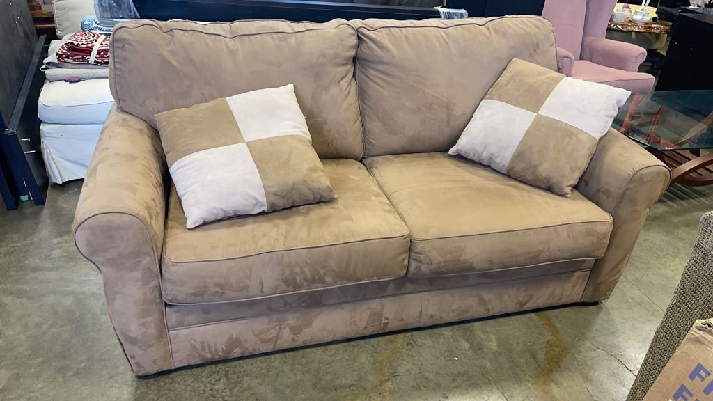 MICROFIBRE HIDE A BED SOFA WITH 2 THROW PILLOWS