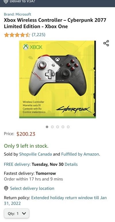 MICROSOFT XBOX ONE LIMITED EDITION 2077 CYBERPUNK CONTROLLER TESTED AND WORKING RETAIL $200