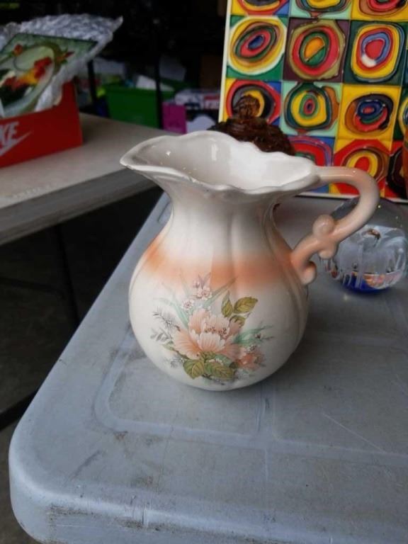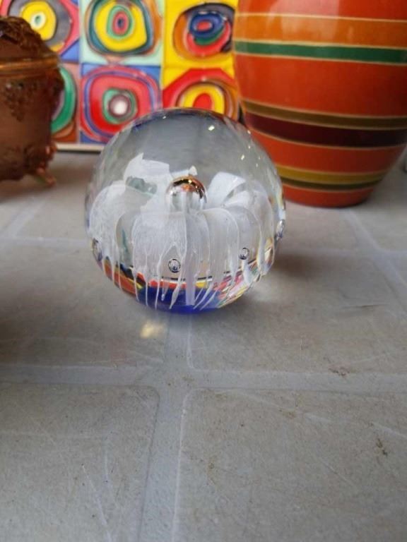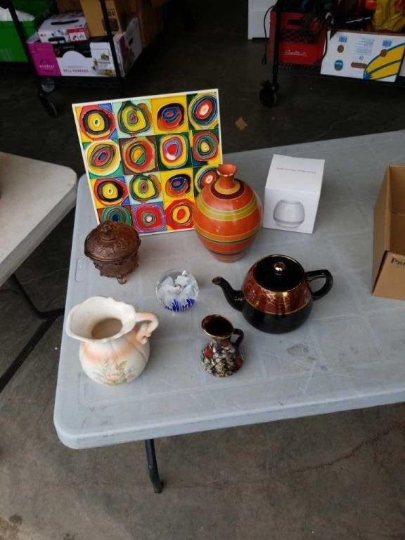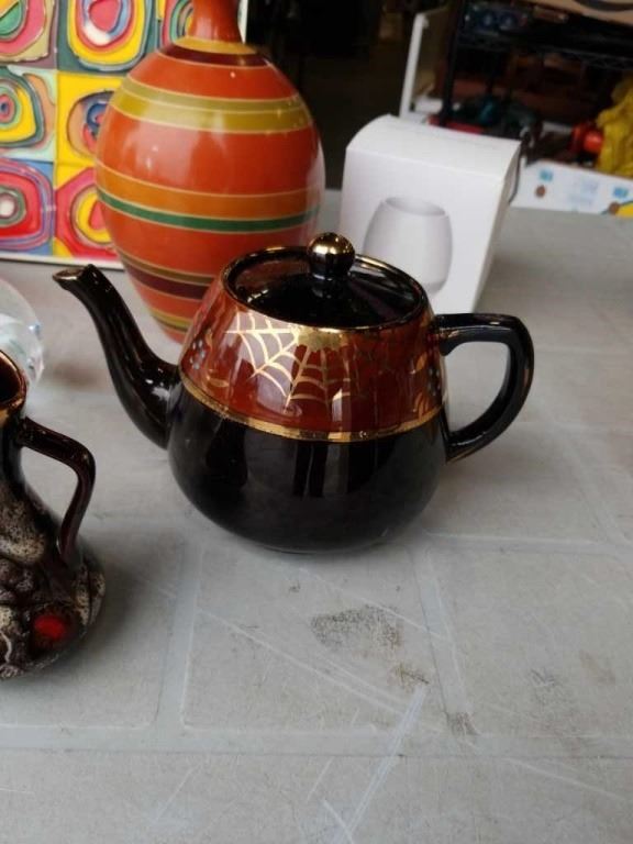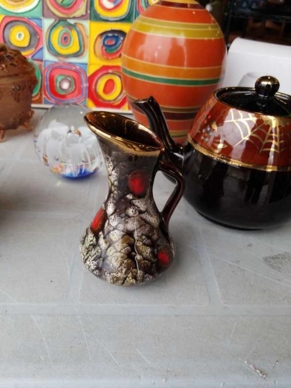 MID CENTURY COLLECTABLES, ART GLASS PAPER WEIGHT, ENGLAND TEAPOT, PITCHERS