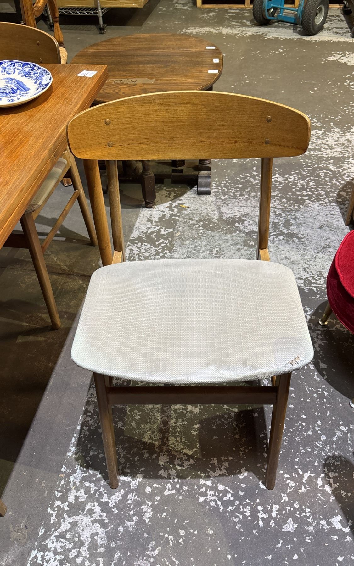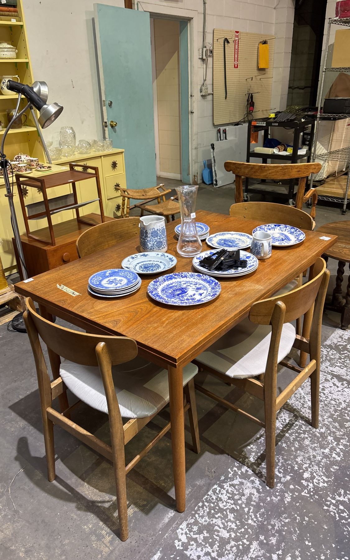 MID CENTURY MODERN DANISH DRAW LEAF TABLE (47" X 31" X 29") WITH 4 CHAIRS (CONTENTS NOT INCLUDED)