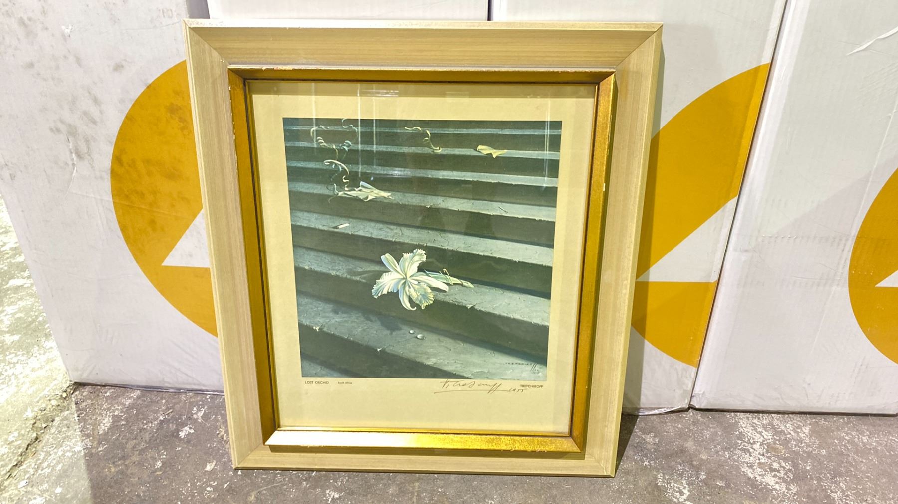 MID CENTURY MODERN VLADIMIR TRETCHIKOFF "LOST ORCHID" 1955 SIGNED PRINT APPROX. 17 1/2" X 15 1/2" IN ORIGINAL FRAME