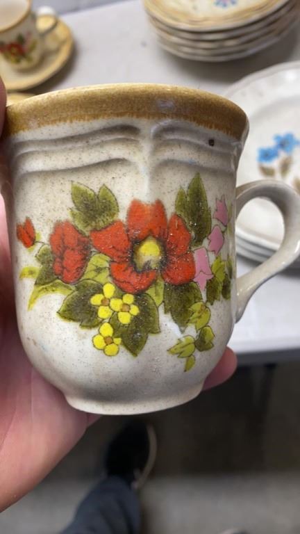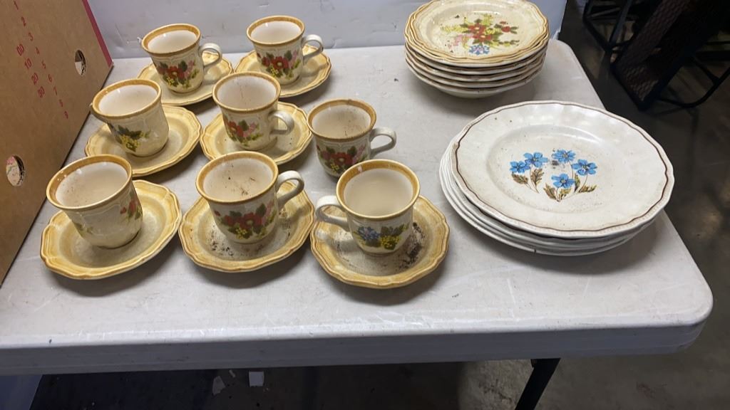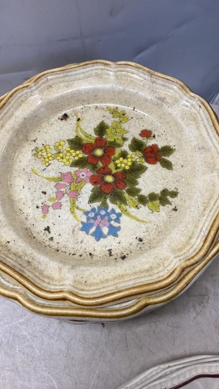 MIKASA GARDEN CLUB CUPS AND SAUCERS AND BOWLS AND OTHER IRONSTONE PLATES