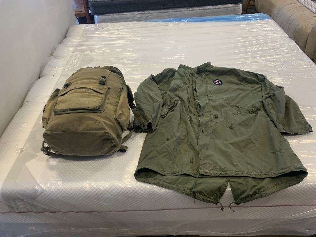 MILITARY BAGS AND JACKET WITH SLEEPING BAG