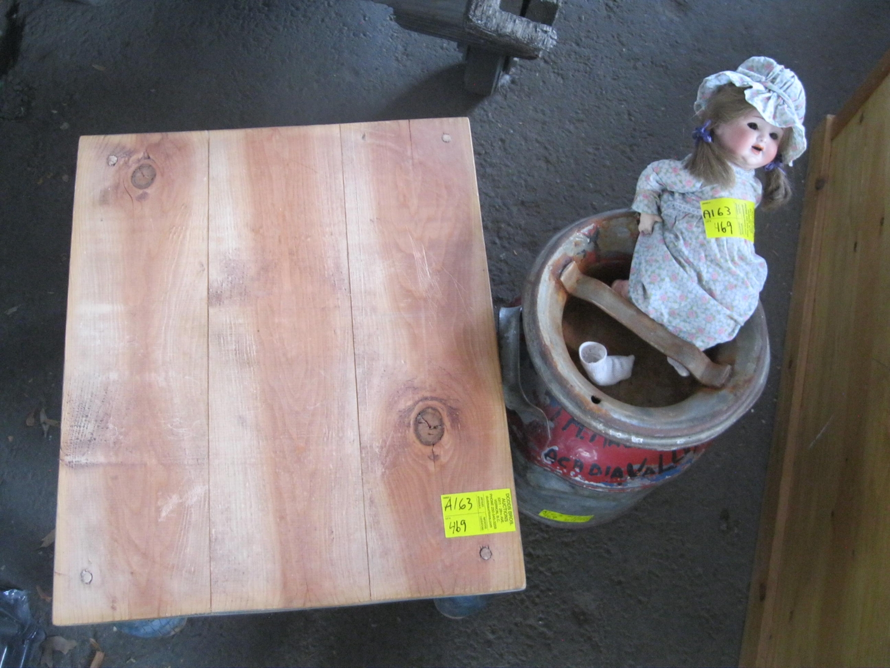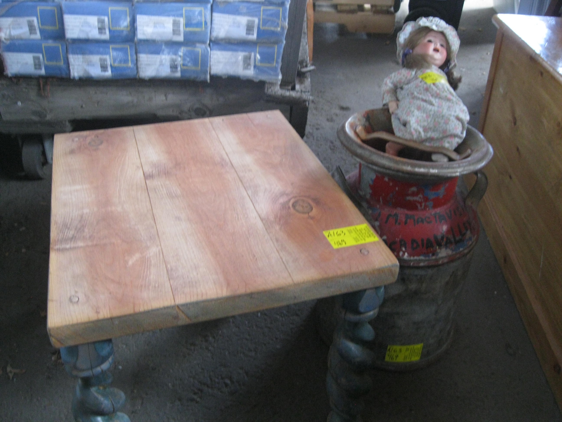 MILK CAN, DOLL & SM. BARLEY TWIST TABLE