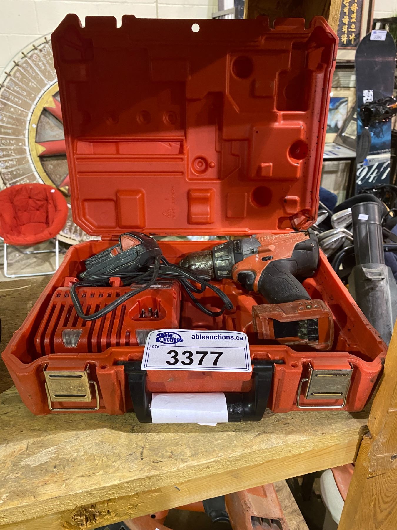 MILWAUKEE CORDLESS DRILL/DRIVER WITH HARD CASE, BATTERY CHARGER & RED LITHIUM BATTERY