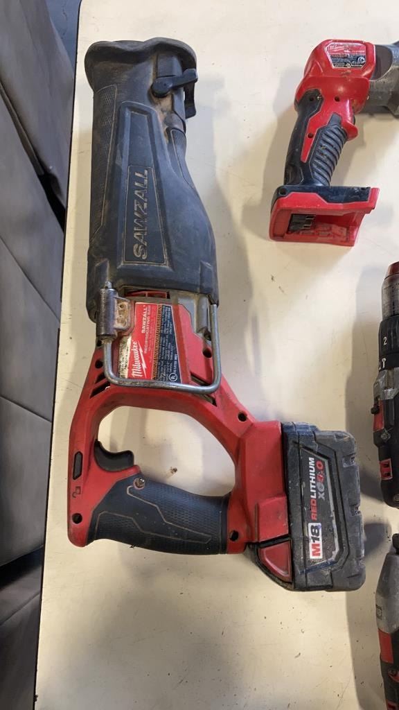MILWAUKEE CORDLESS TOOL SET INCLUDING - M18 FUEL SAWZALL, M18 HAMMER DRILL, IMPACT GUN AND FLASHLIGH