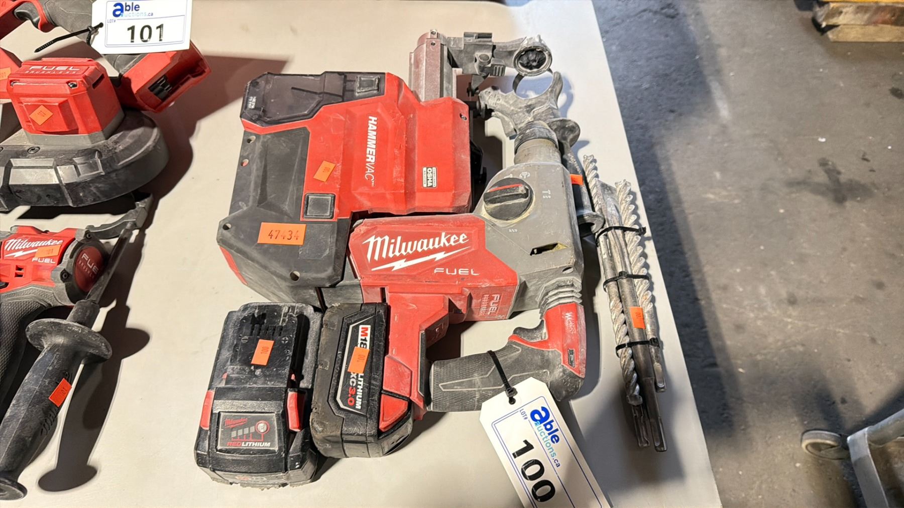 MILWAUKEE FUEL M18 CORDLESS AVS HAMMER DRILL WITH HAMMERVAC ATTACHMENT, 2 BATTERIES, DRILL BITS, &