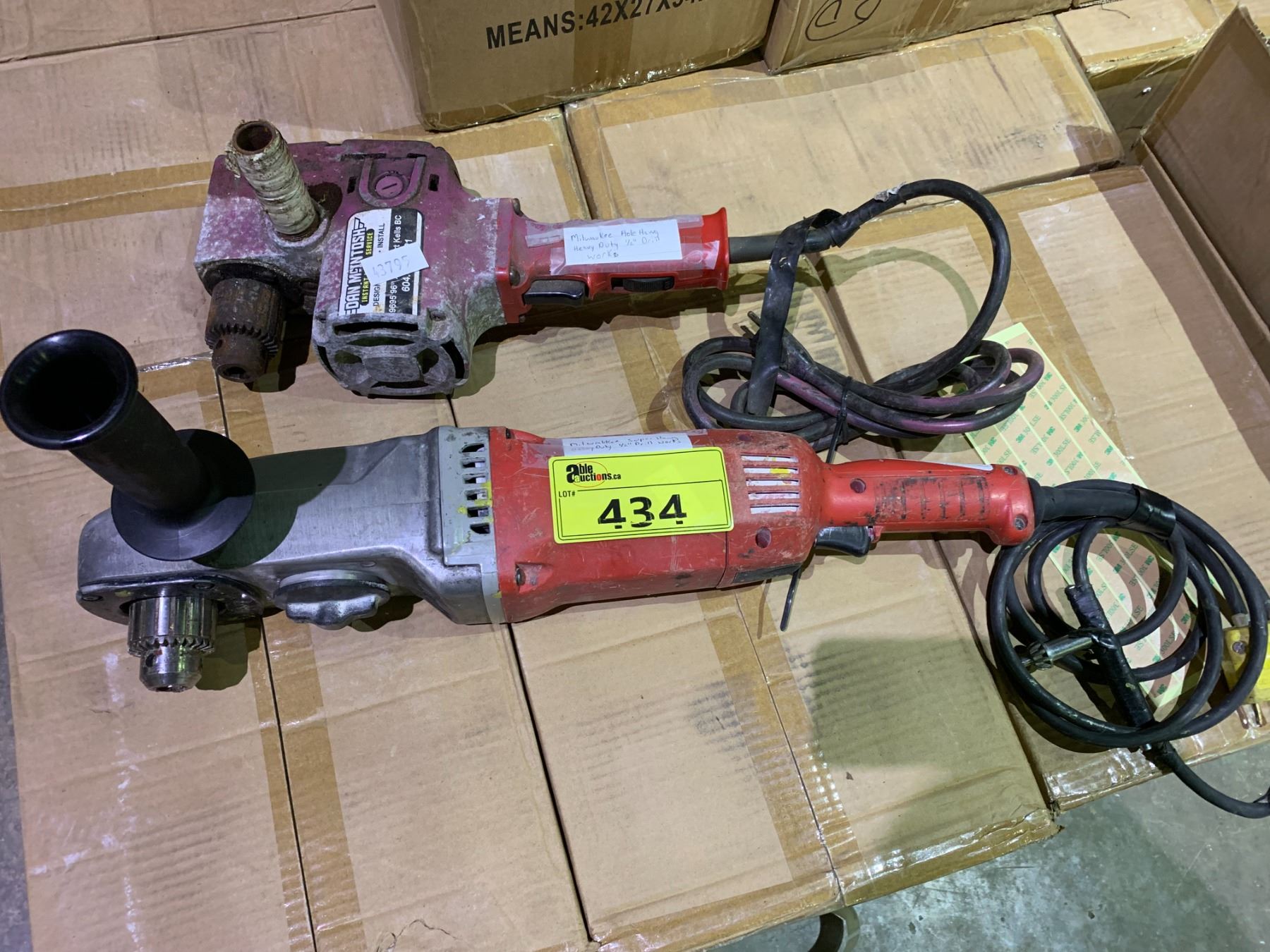 MILWAUKEE HAWG HALF INCH DRILL, AND A MILWAUKEE SUPER HOG HALF INCH DRILL