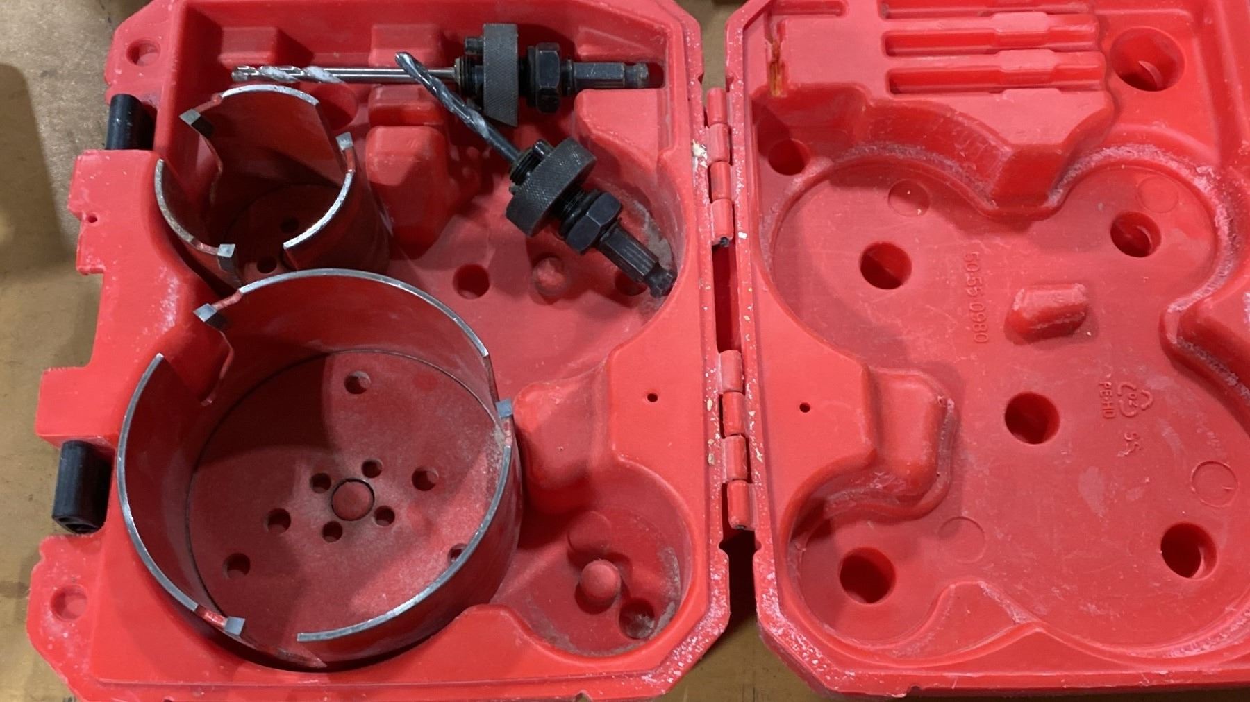 MILWAUKEE INDUSTRIAL ELECTRIC 7 1/4  CIRCULAR SAW & MILWAUKEE PLUMBERS HOLE SAWS IN HARD TRANSPORT