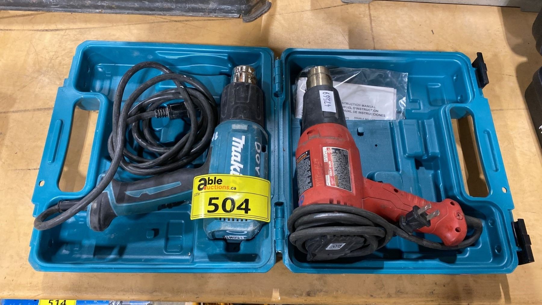 MILWAUKEE INDUSTRIAL ELECTRIC HEAT GUN & MAKITA ELECTRIC HEAT GUN IN HARD TRANSPORT CASE