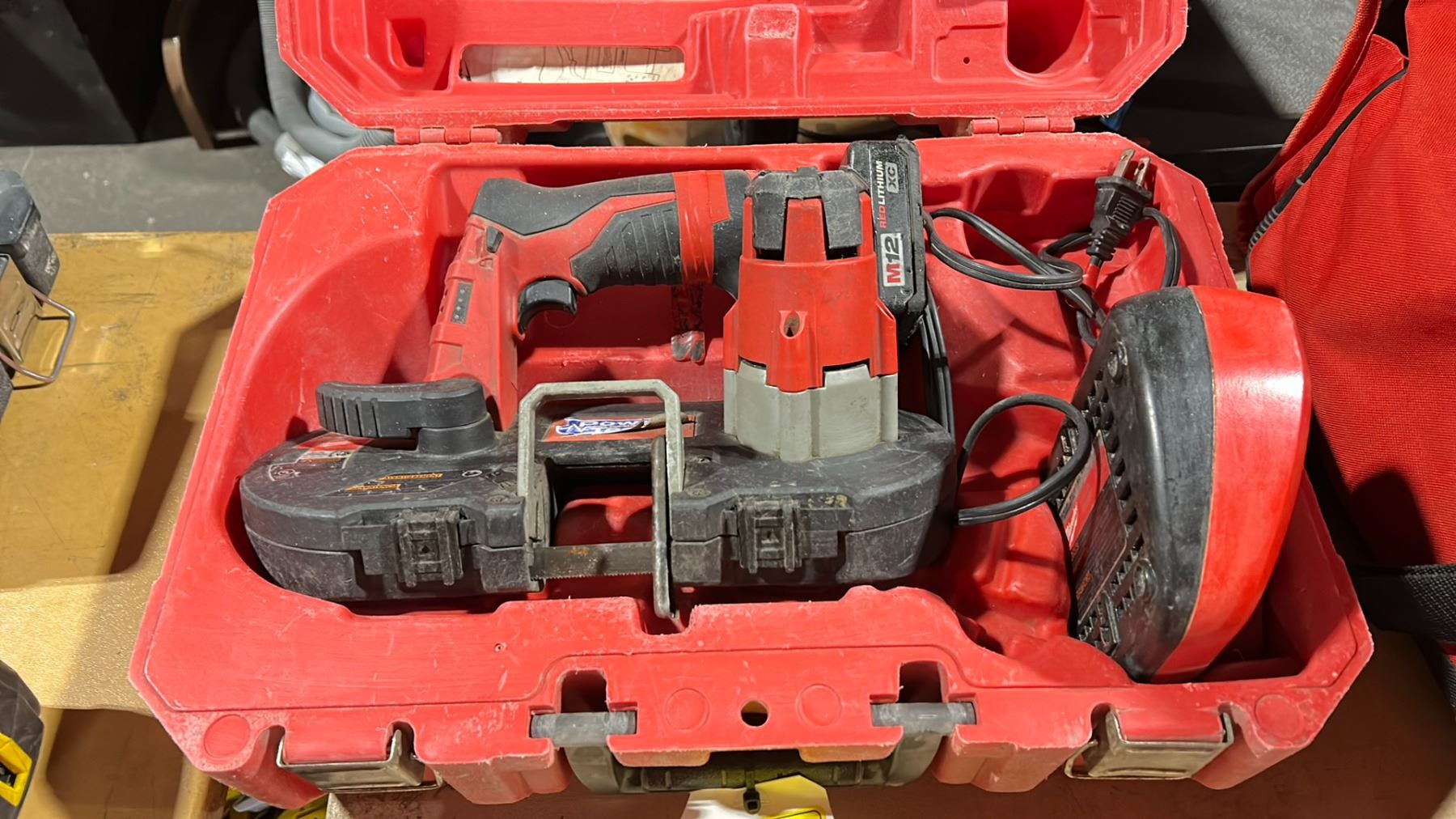 MILWAUKEE M12 CORDLESS PORTABLE BAND SAW WITH BATTERY & CHARGER IN HARD TRANSPORT CASE