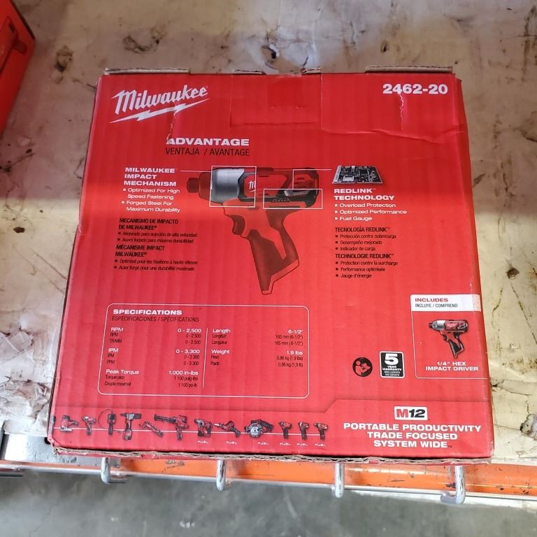 MILWAUKEE M121/4" HEX IMPACT DRIVER, 2462-20