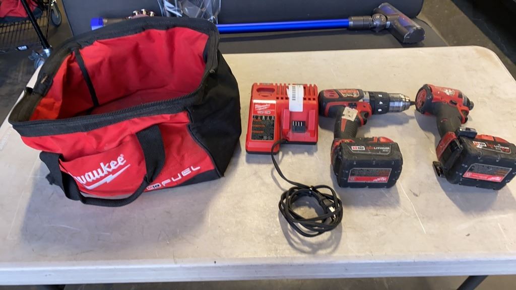MILWAUKEE M18 CORDLESS TOOL SET - IMPACT GUN, DRILL, 2 BATTERIES AND CHARGER - TESTED WORKING
