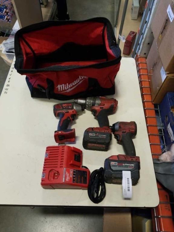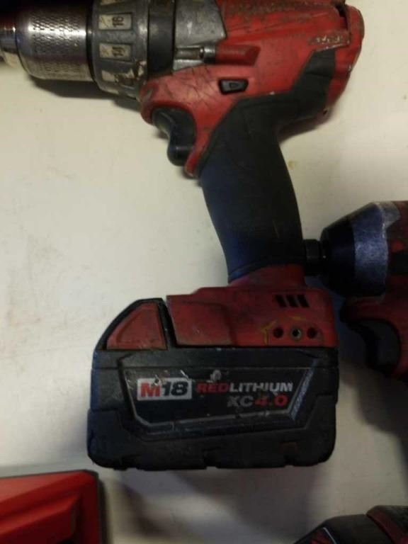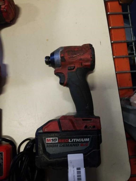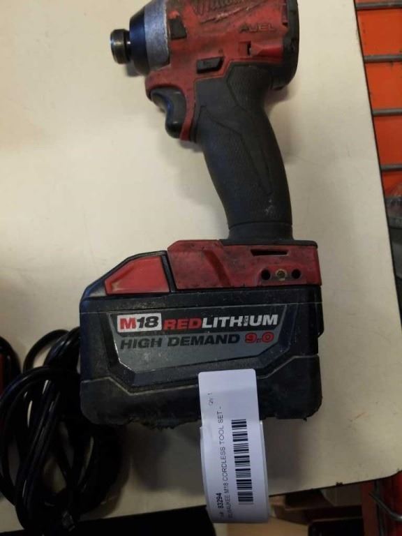 MILWAUKEE M18 CORDLESS TOOL SET - INCLUDES FUEL IMPACT GUN, BRUSHLESS HAMMER DRILL, IMPACT GUN, 9.0 BATTERY, XC 4.0 BATTERY AND CHARGER - TESTED WORKING