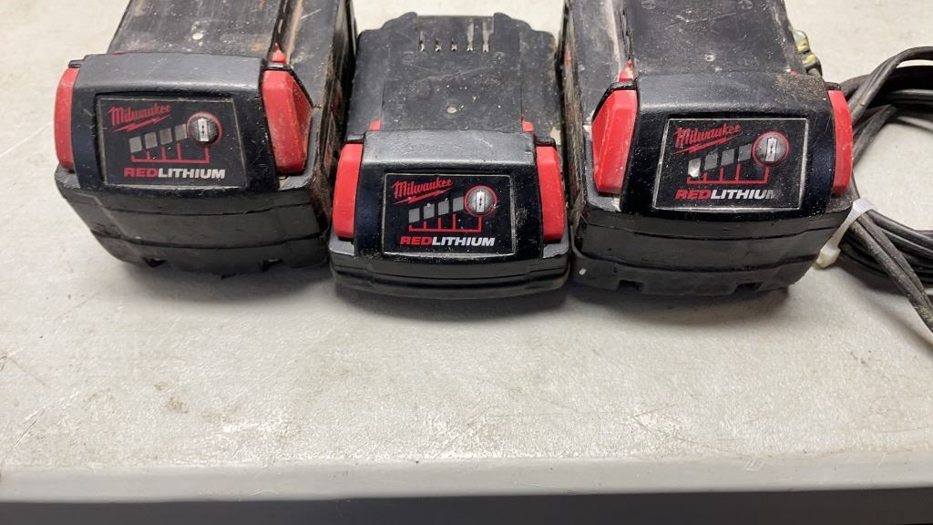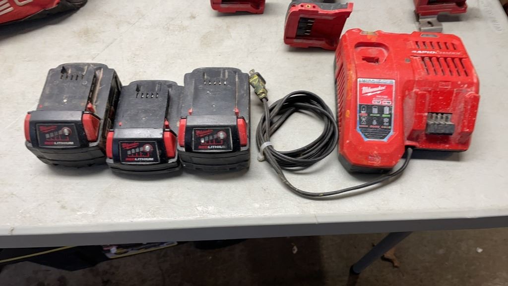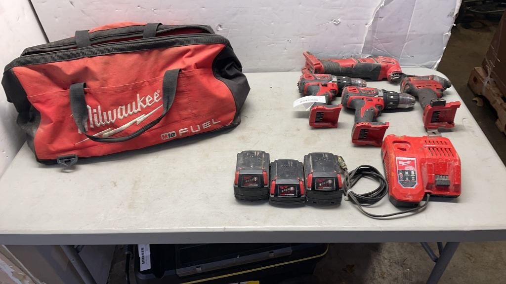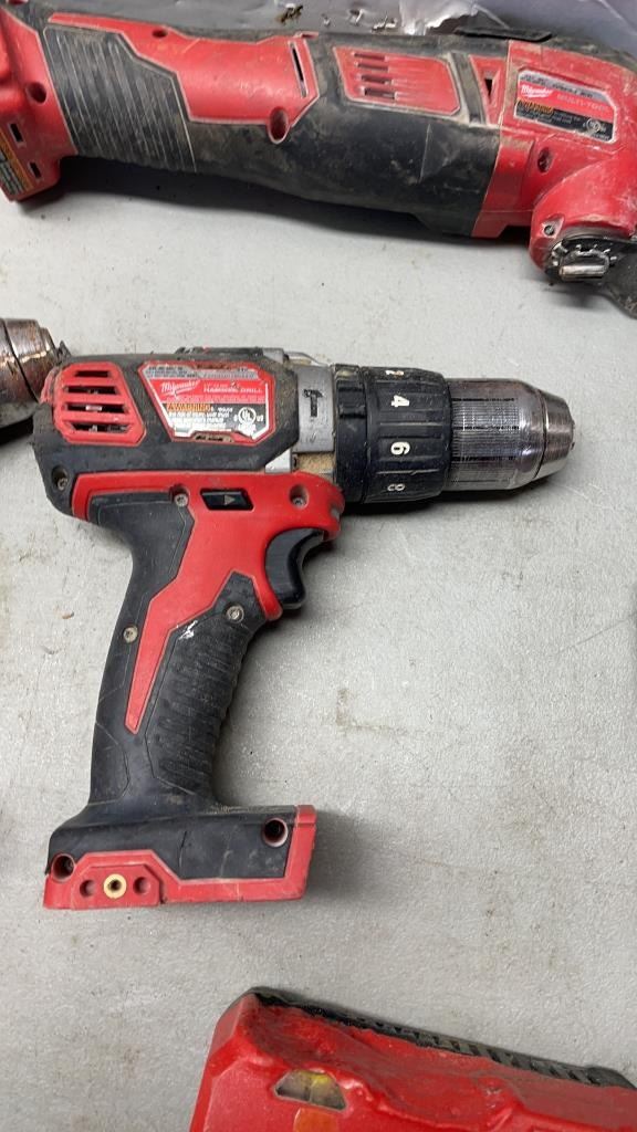 MILWAUKEE M18 CORDLESS TOOL SET, INLCUDES MUTI TOOL, 2 HAMMER DRILLS, FUEL BRUSHLESS IMPACT GUN, RED LITHIUM XC3.0, XC AND CP1.5 BATTERIES AND CHARGER - TESTED WORKING