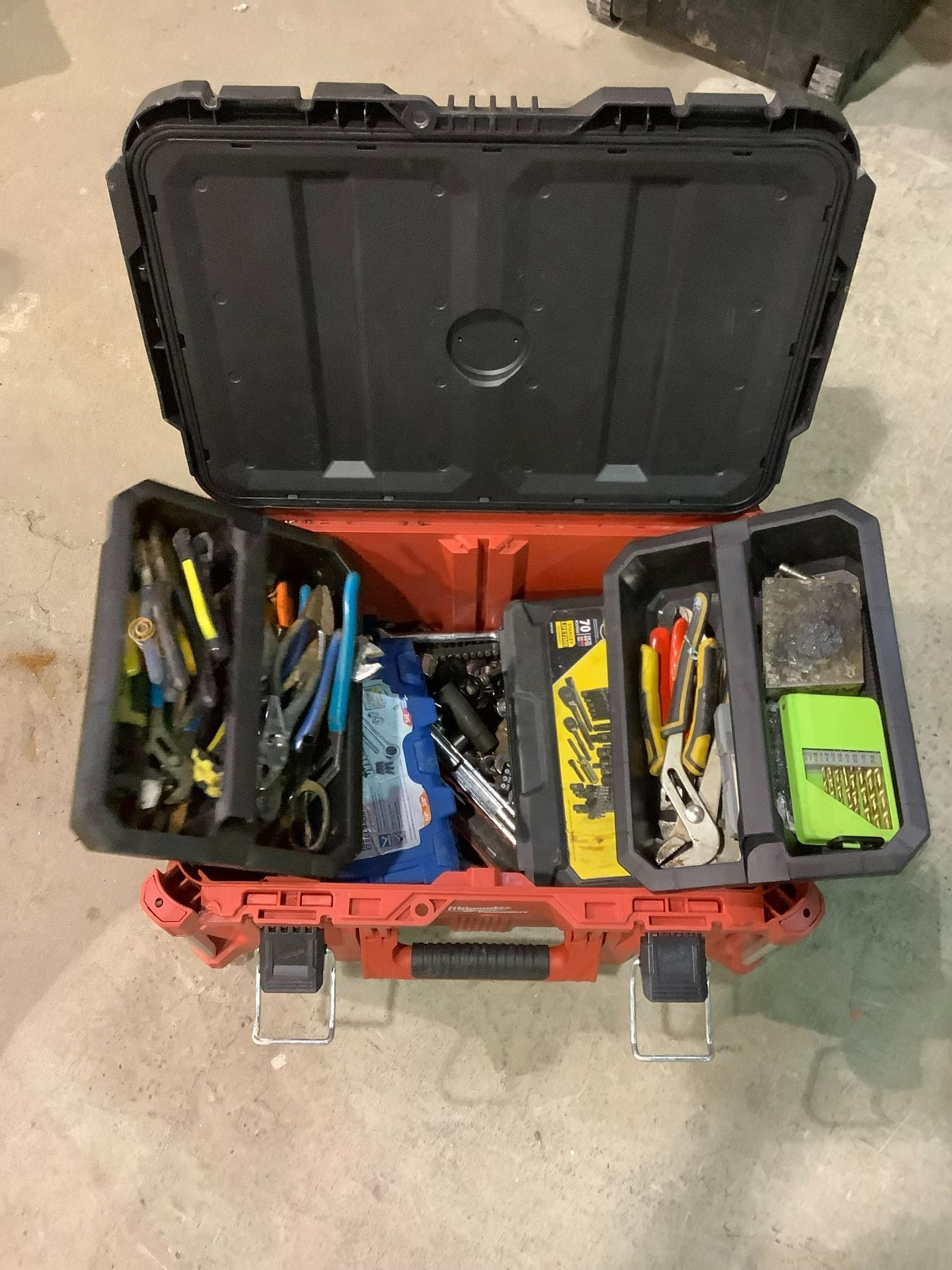 MILWAUKEE PACKOUT TOOL STORAGE UNIT WITH ASSORTED CONTENTS AND TOOLS