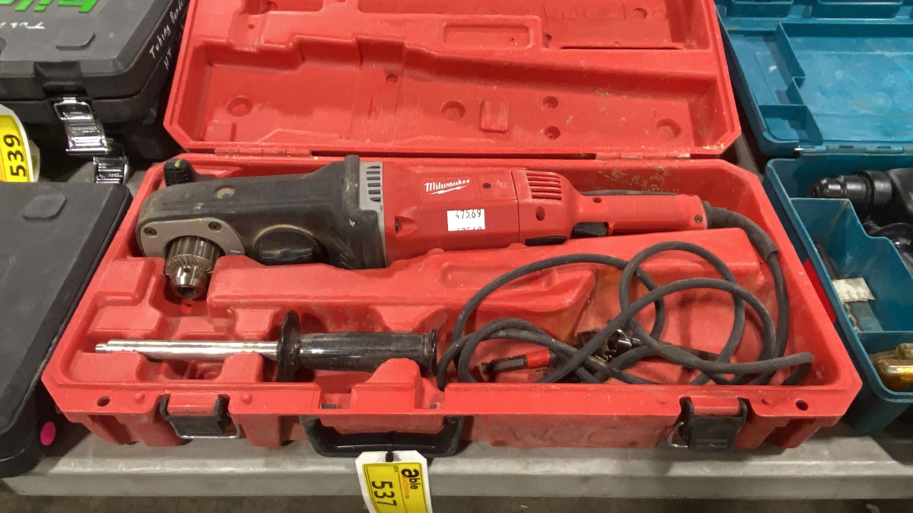 MILWAUKEE SUPER HAWG INDUSTRIAL ELECTRIC HEAVY DUTY ANGLE DRILL IN HARD TRANSPORT CASE