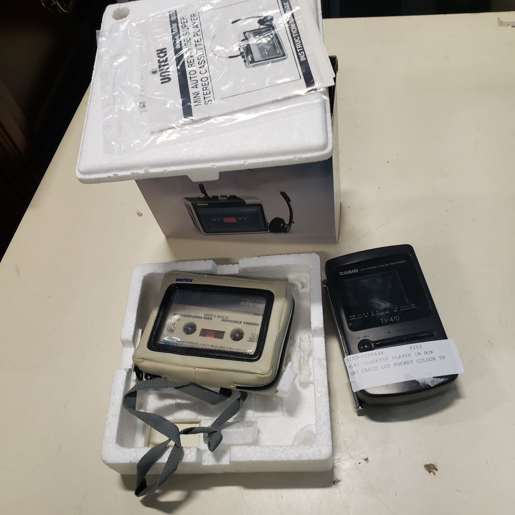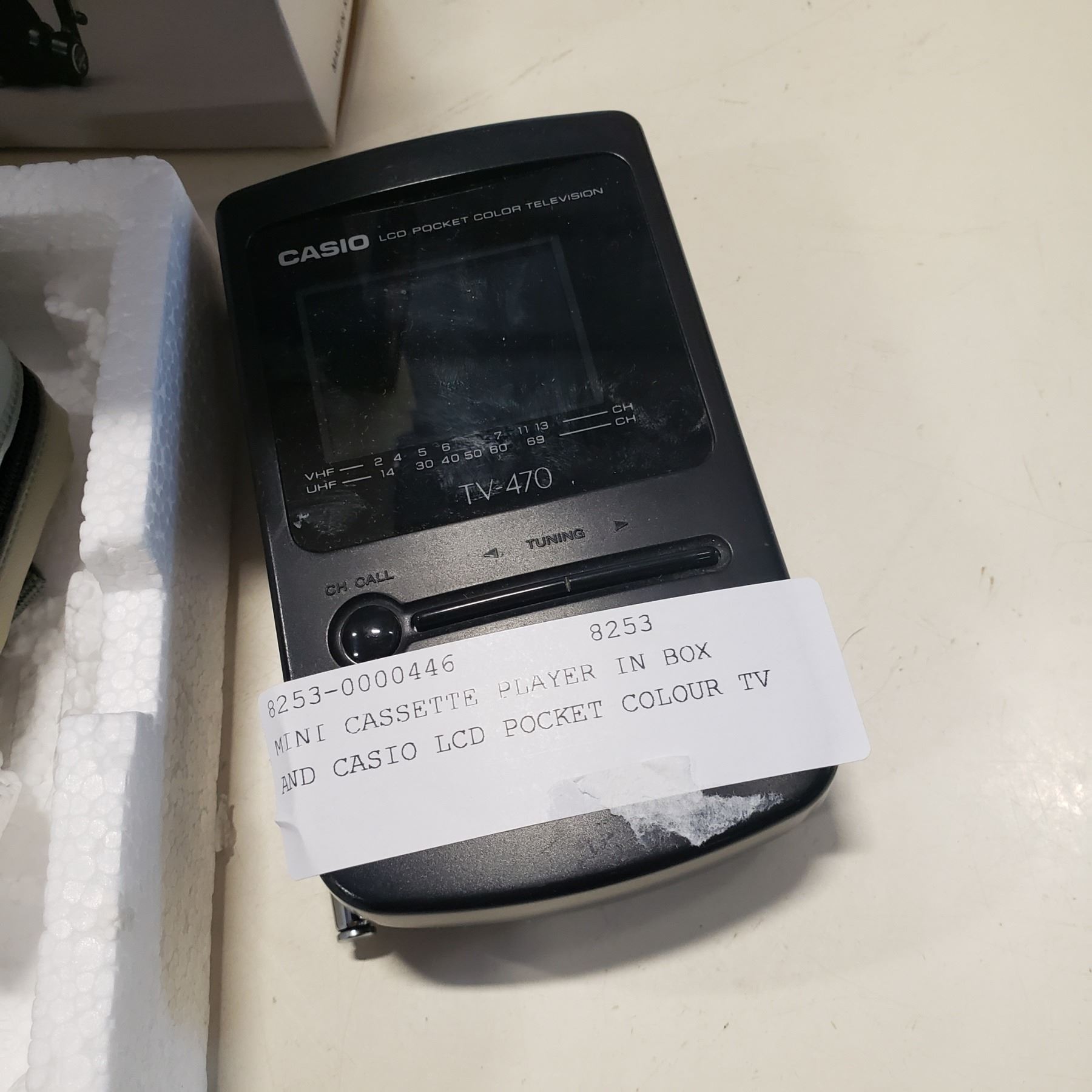 MINI CASSETTE PLAYER IN BOX AND CASIO LCD POCKET COLOUR TV