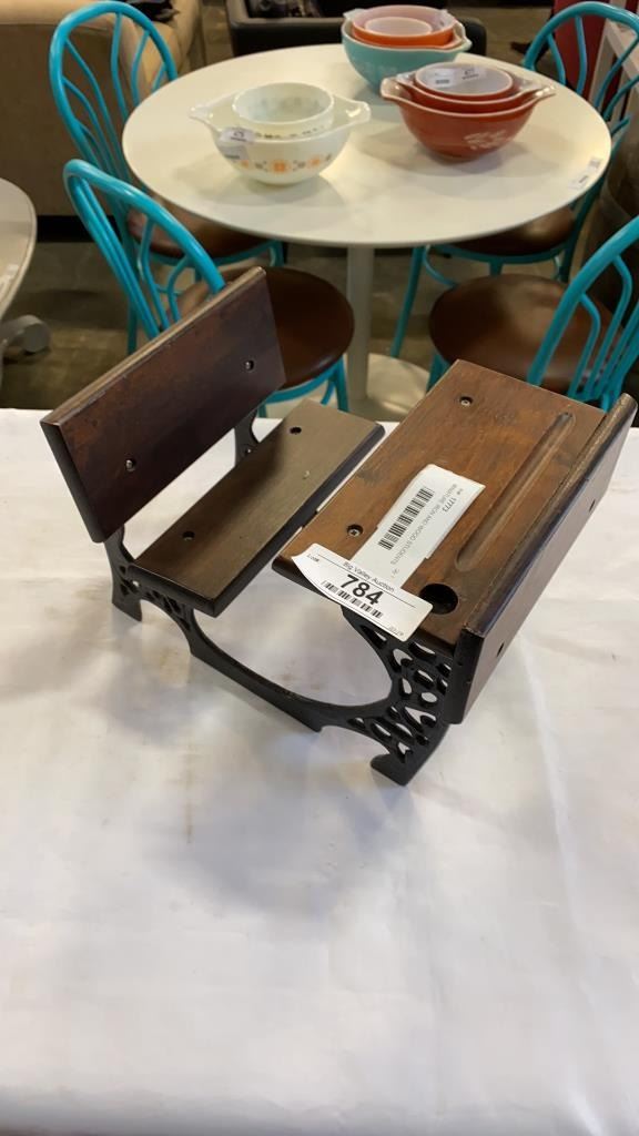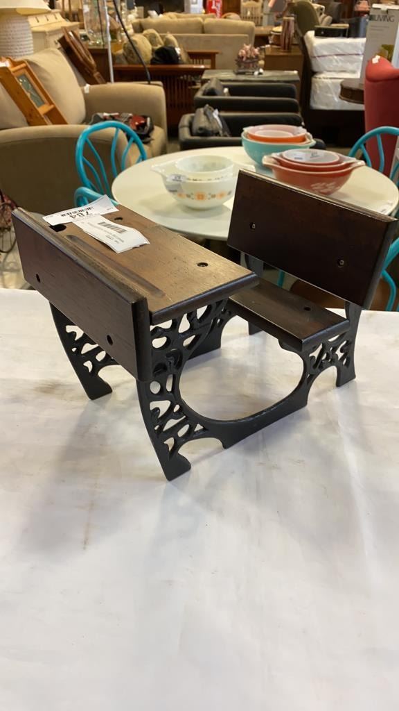 MINIATURE IRON AND WOOD STUDENTS DESK
