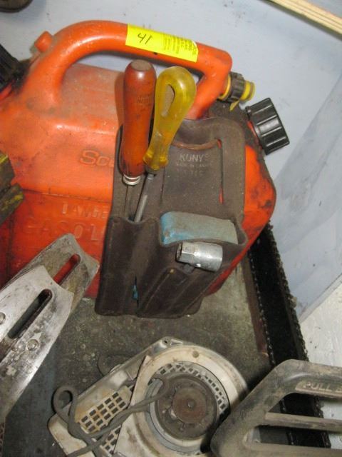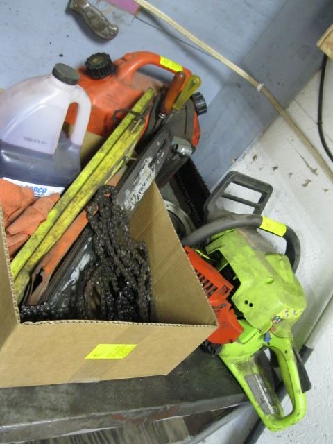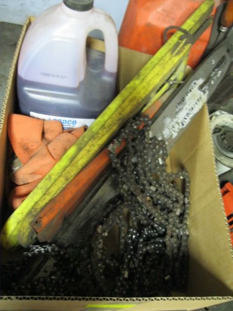 MISC. AS IS CHAIN SAW, CHAIN SAW OIL, CHAINS, BARS, ETC.