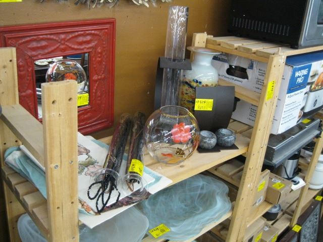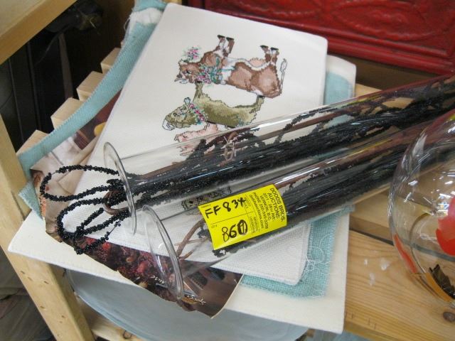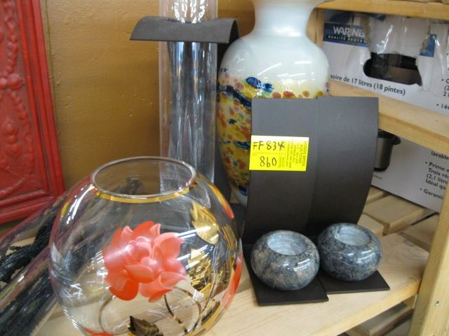 MISC. CANDLE HOLDERS, VASES, BEADS, ETC.