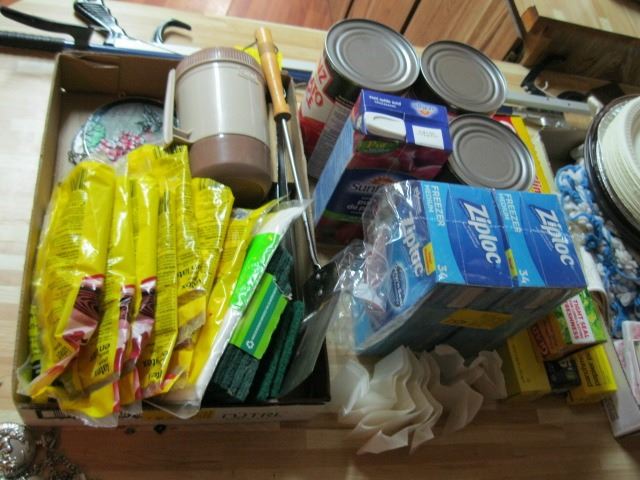 MISC. ZIPLOCK BAGS, TOMATO JUICE, PAPER PLATES, ETC.