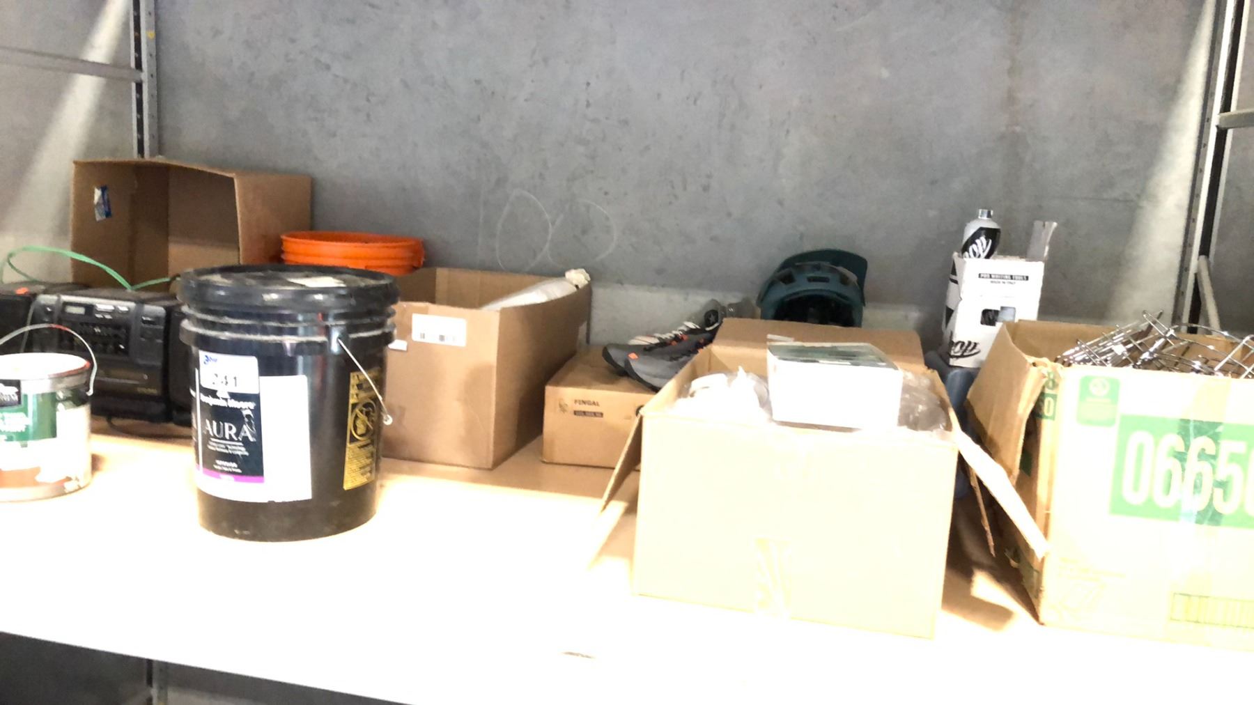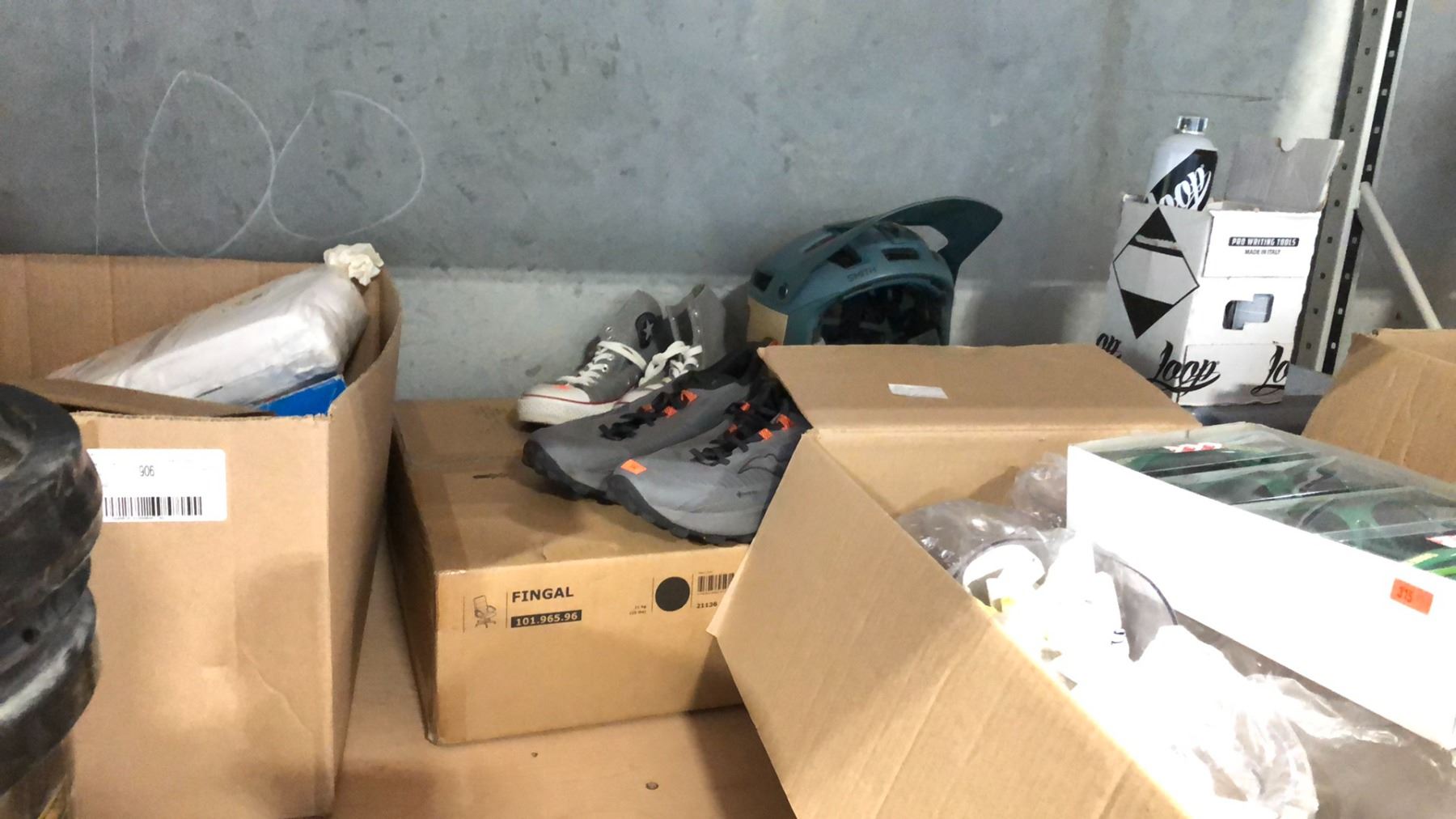 MIXED ITEMS INCL MEN'S SHOES, BIKE HELMET, ADJUSTABLE OFFICE CHAIR (IN BOX), SONY RADIO AND MORE