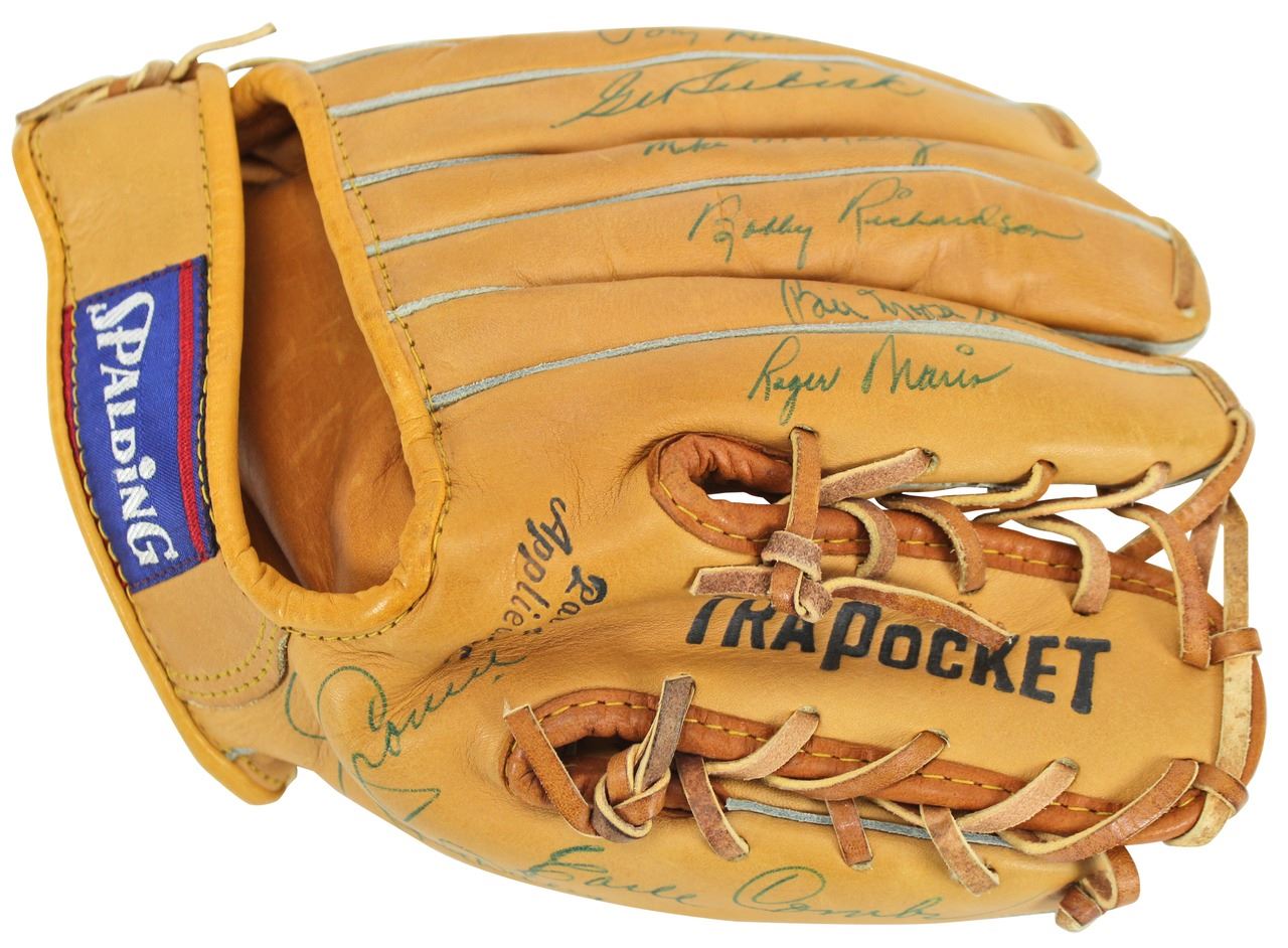 MLB Greats (13) Maris, Cronin, Combs, Skowron Signed Baseball Glove (JSA COA)