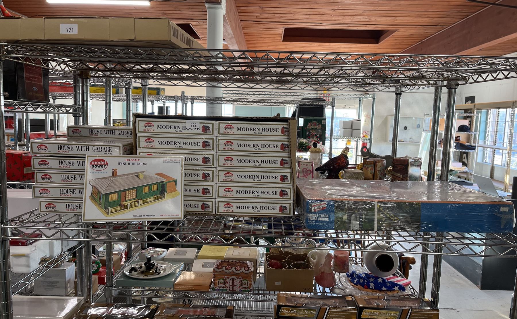 MODEL POWER HO SCALE HOUSE WITH GARAGE SCENIC STRUCTURES, MODERN HOUSE SCENIC STRUCTURES & A WALTHERS HO SCALE SINGLE TRACK TRUSS BRIDGE
