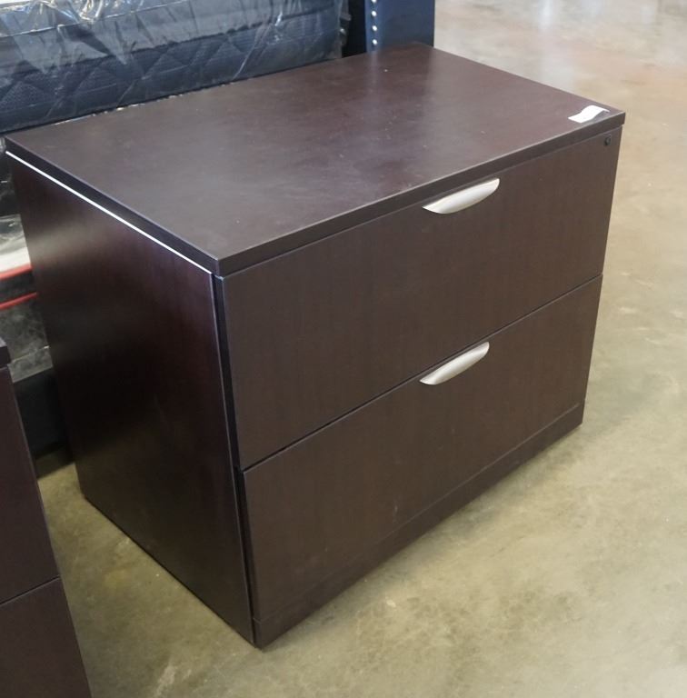 MODERN 2 DRAWER LATERAL FILING CABINET APPX 3 FOOT WIDE 29 INCHES TALL, 22 INCHES DEEP