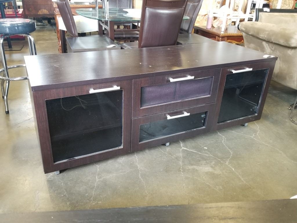 MODERN GLASS DOOR MEDIA STAND