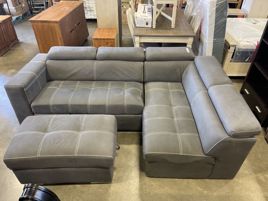 MODERN GREY FABRIC 2PC SECTIONAL SOFA WITH STORAGE AND OTTOMAN