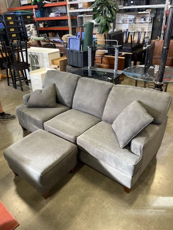 MODERN GREY FABRIC SOFA WITH OTTOMAN, GOOD CLEAN CONDITION