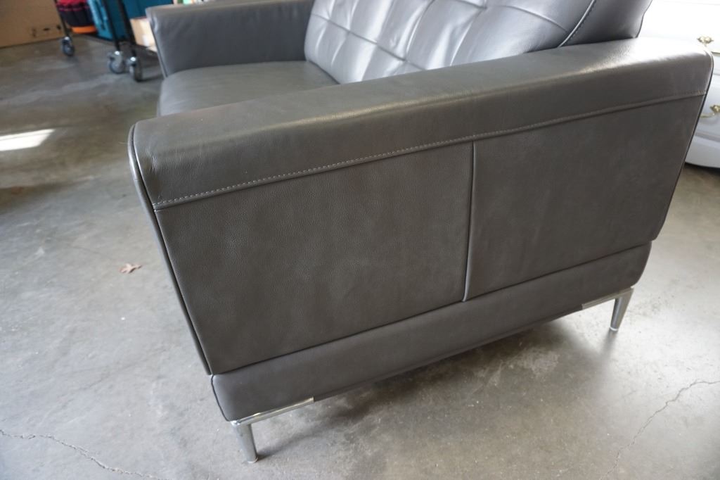 MODERN GREY LEATHER LOVESEAT WITH CHROME LEGS