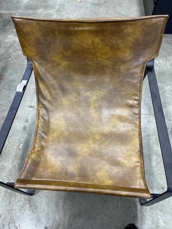 MODERN LEATHER SLING AND METAL ACCENT CHAIR
