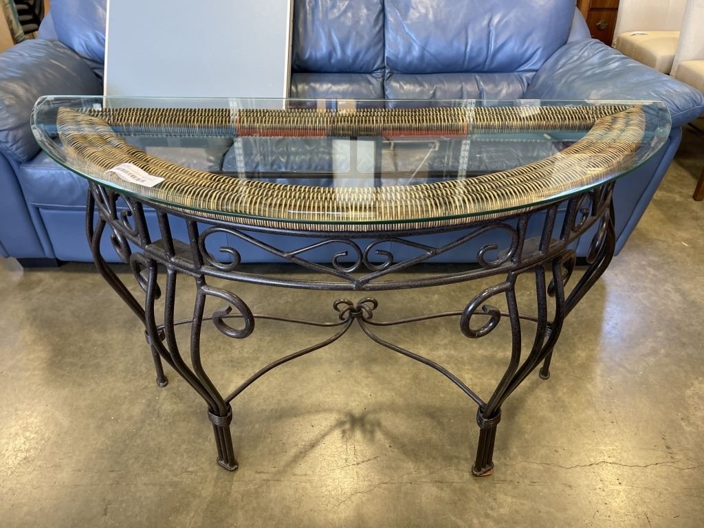 MODERN RATTAN GLASSTOP SOFA TABLE