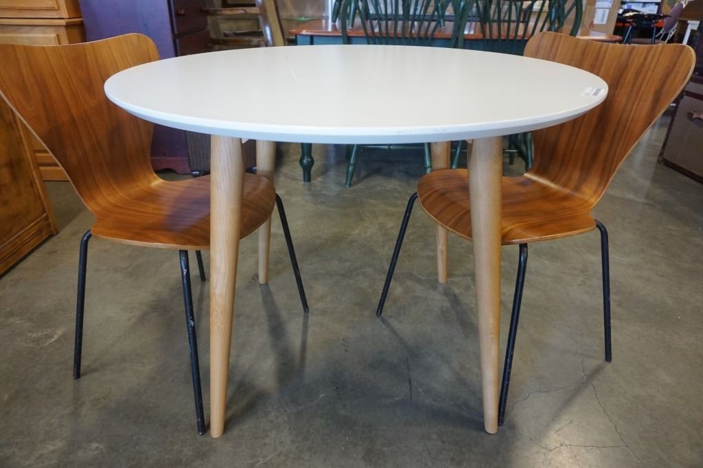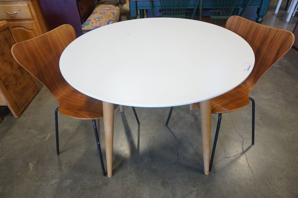 MODERN WHITE ROUND DINING TABLE WITH 2 BENTWOOD CHAIRS