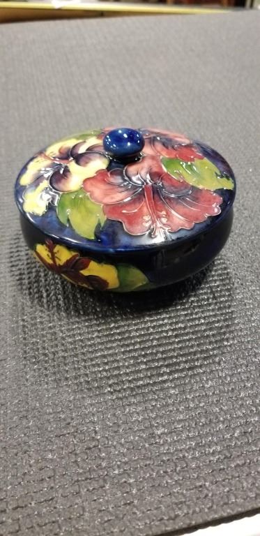MOORCROFT LIDDED DISH, NO CHIPS OR CRACKS