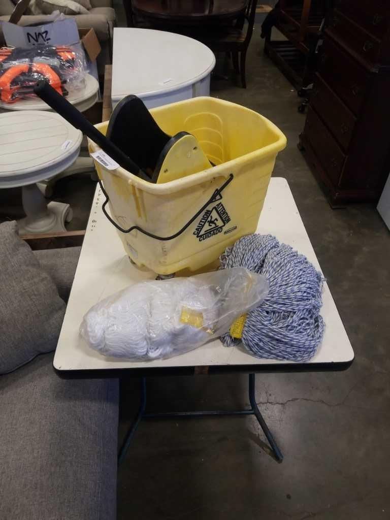 MOP BUCKET WITH WRINGER AND NEW MOP HEADS