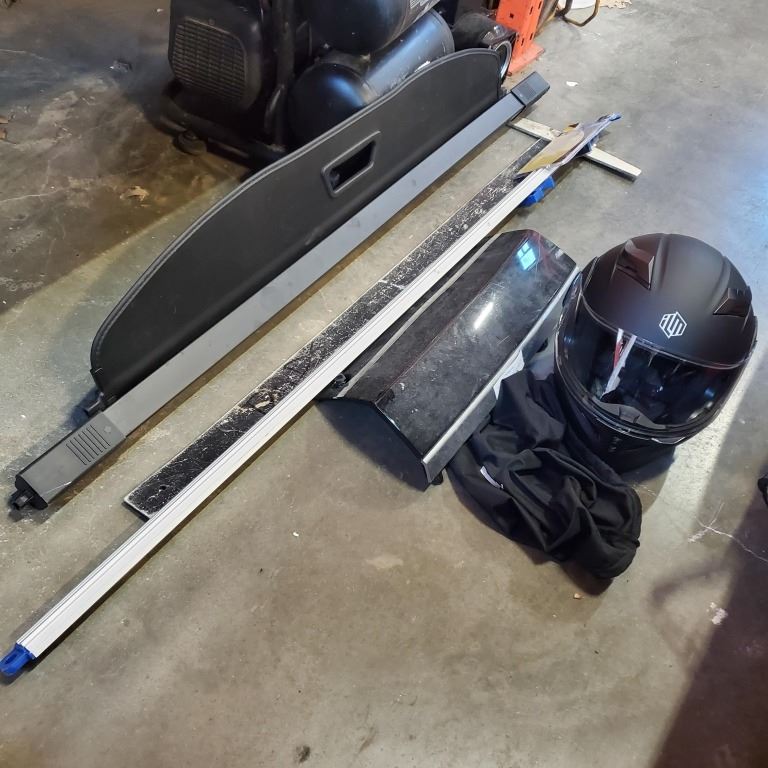 MOTORCYCLE HELMET, SQUARE, 2020 CARGO COVER AND NEW TABLW SAW GUIDE