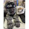 MOTORCYCLE HELMET WITH HEATED JACKET AND CHAPS