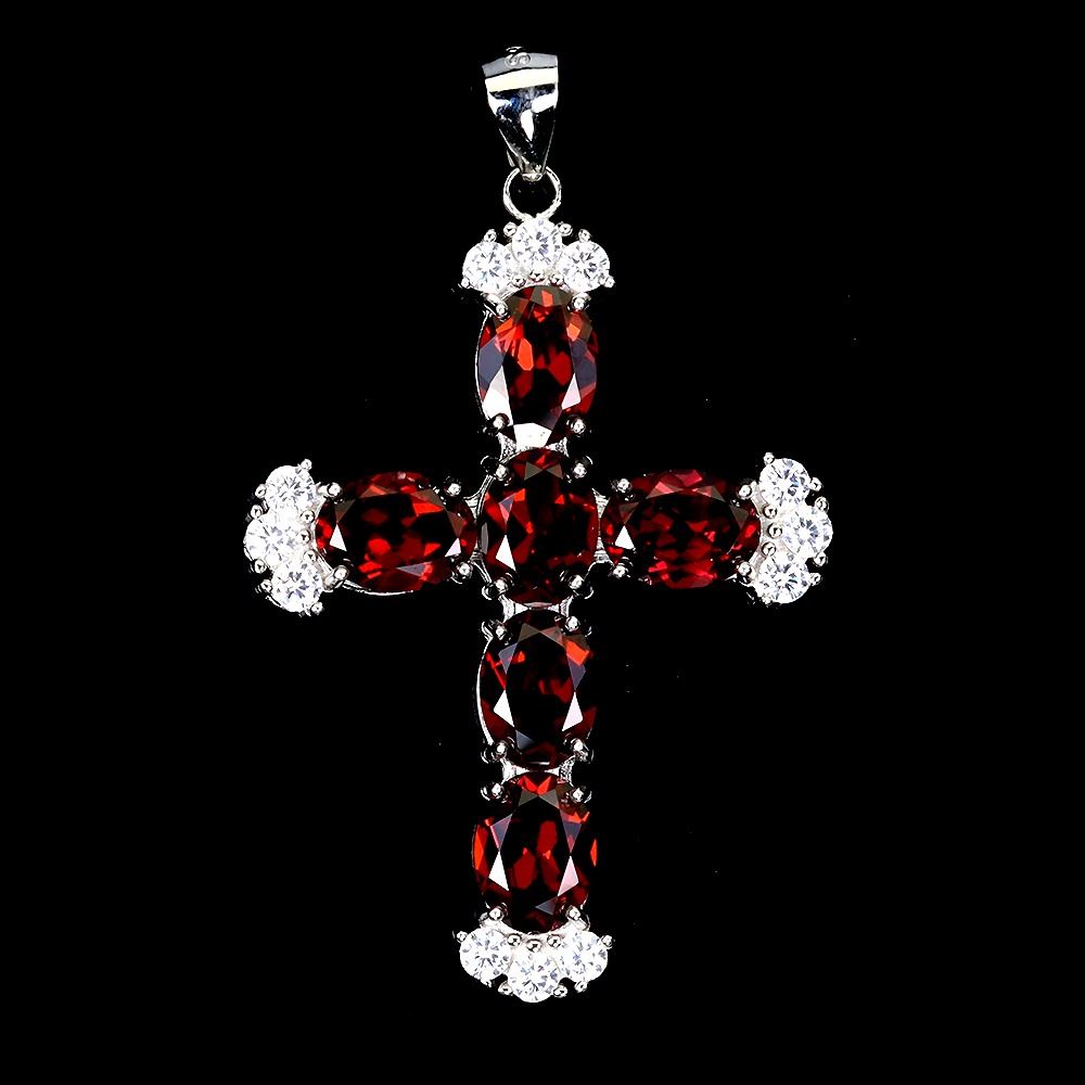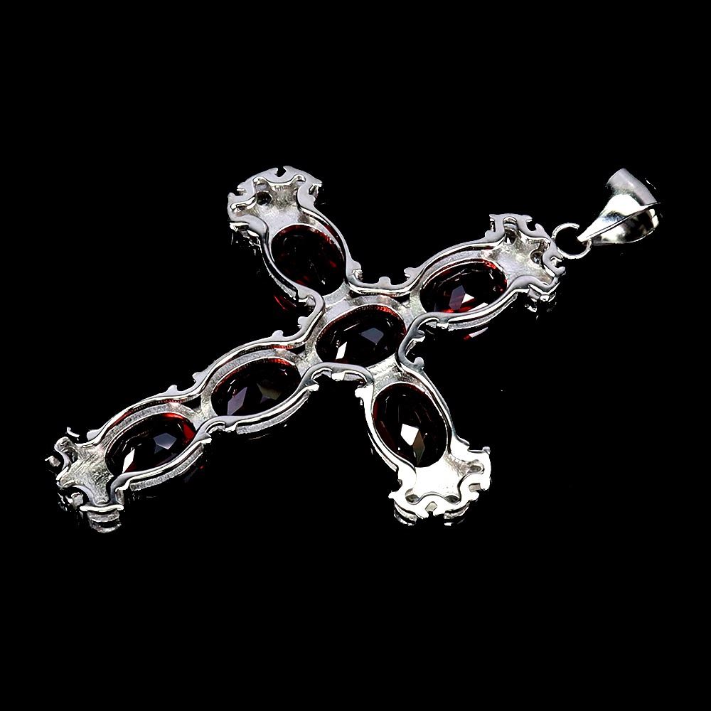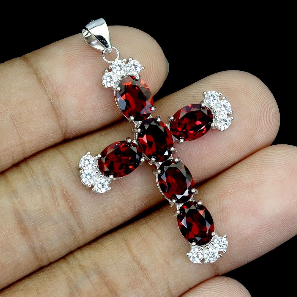 MOZAMBIQUE GARNET CROSS PENDANT IN 14K WHITE PLATED GOLD OVER 925 STERLING SILVER - APPRAISED REPLACEMENT VALUE