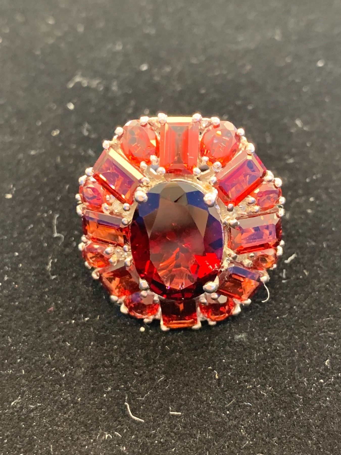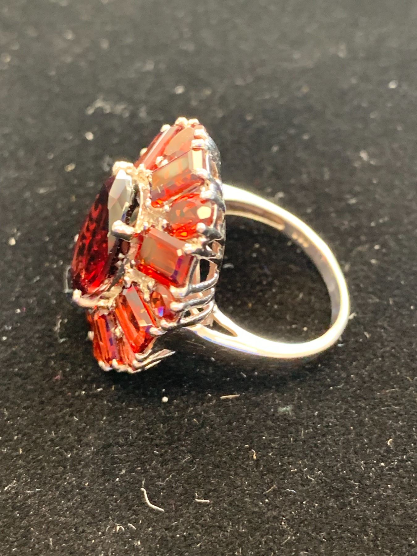 MOZAMBIQUE GARNET (OVL 7.40 CT), DIAMOND RING IN PLATINUM OVERLAY STERLING SILVER NICKEL FREE (SIZE 7) TDIAWT 0.03CTS, TGW 15.31 CTS.