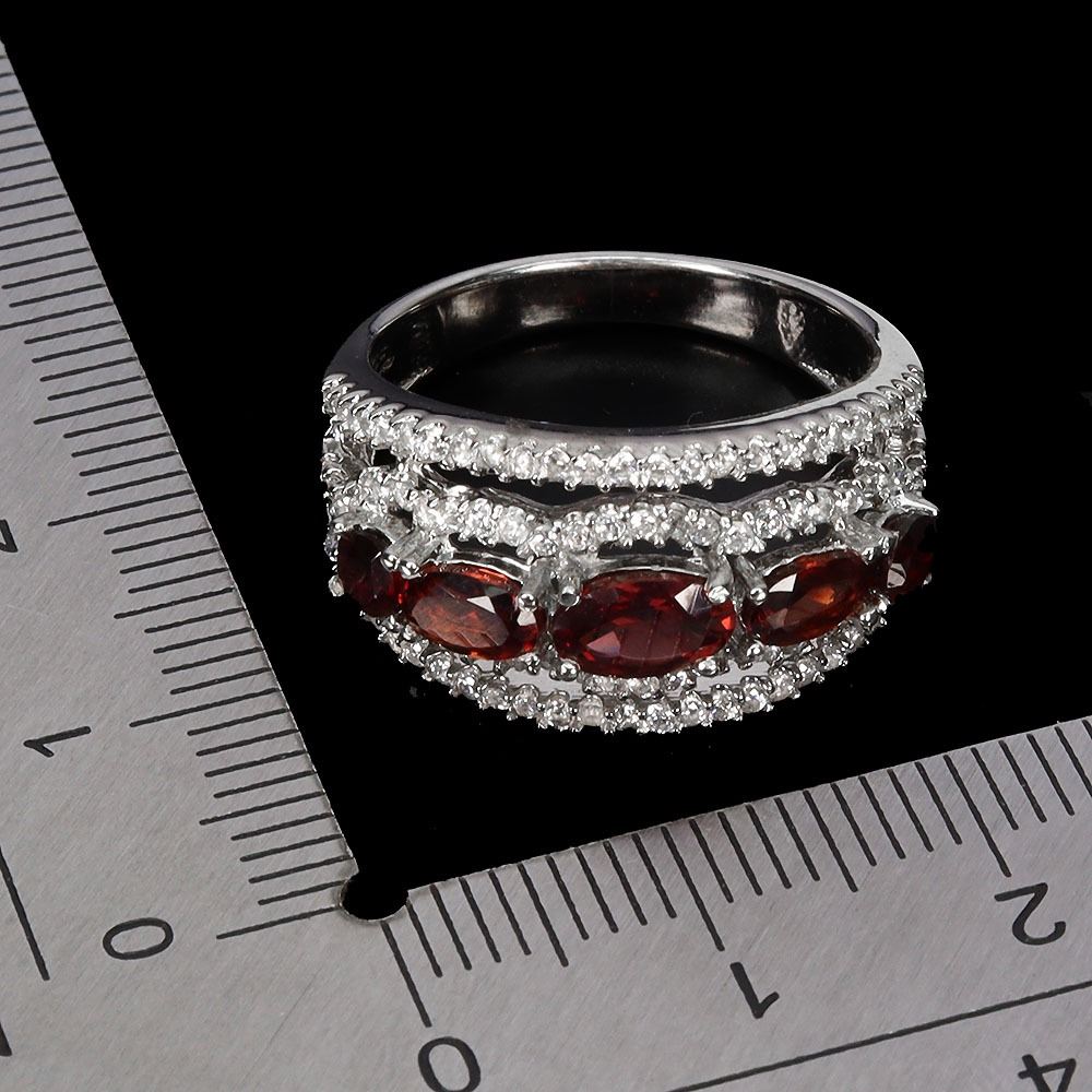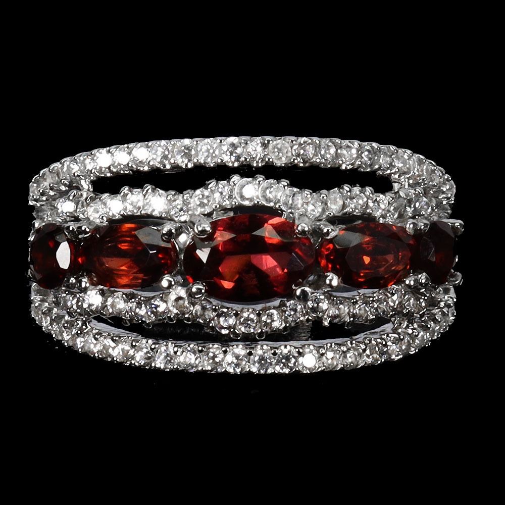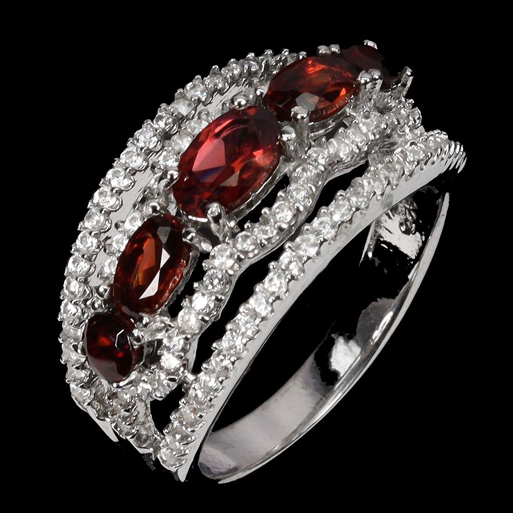 MOZAMBIQUE GARNET RINGCUBIC ZIRCONIA RIND IN 14K WHITE PLATED GOLD OVER 925 STERLING SILVER - SIZE 7 -APPRAISED REPLACEMENT VALUE