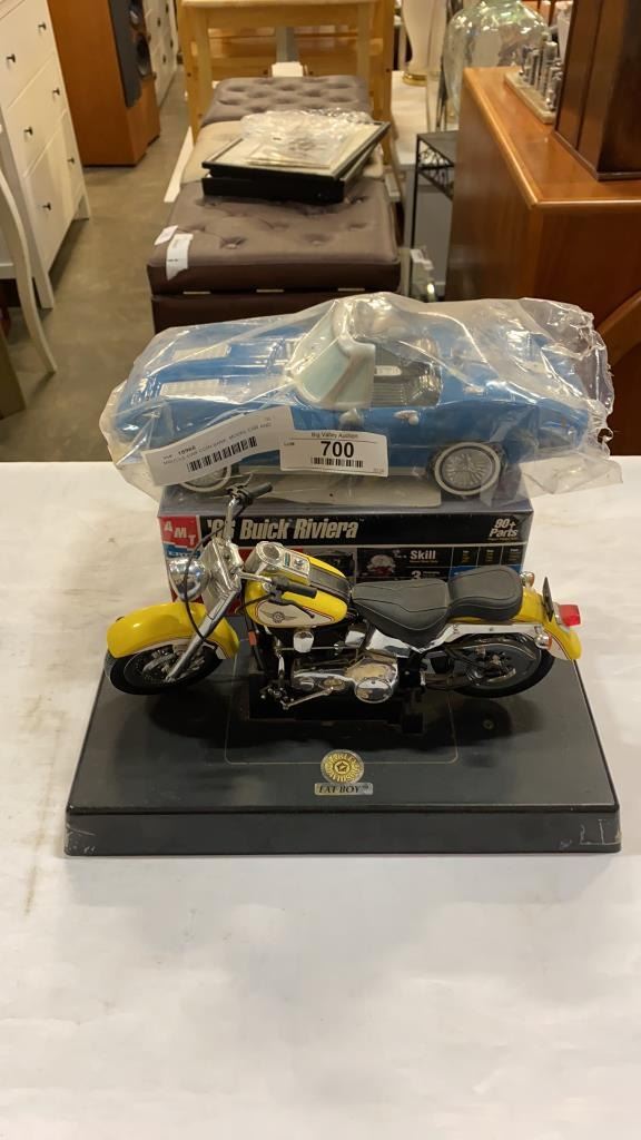 MSUCLE CAR COIN BANK, MODEL CAR AND MOTORCYCLE FIGURE