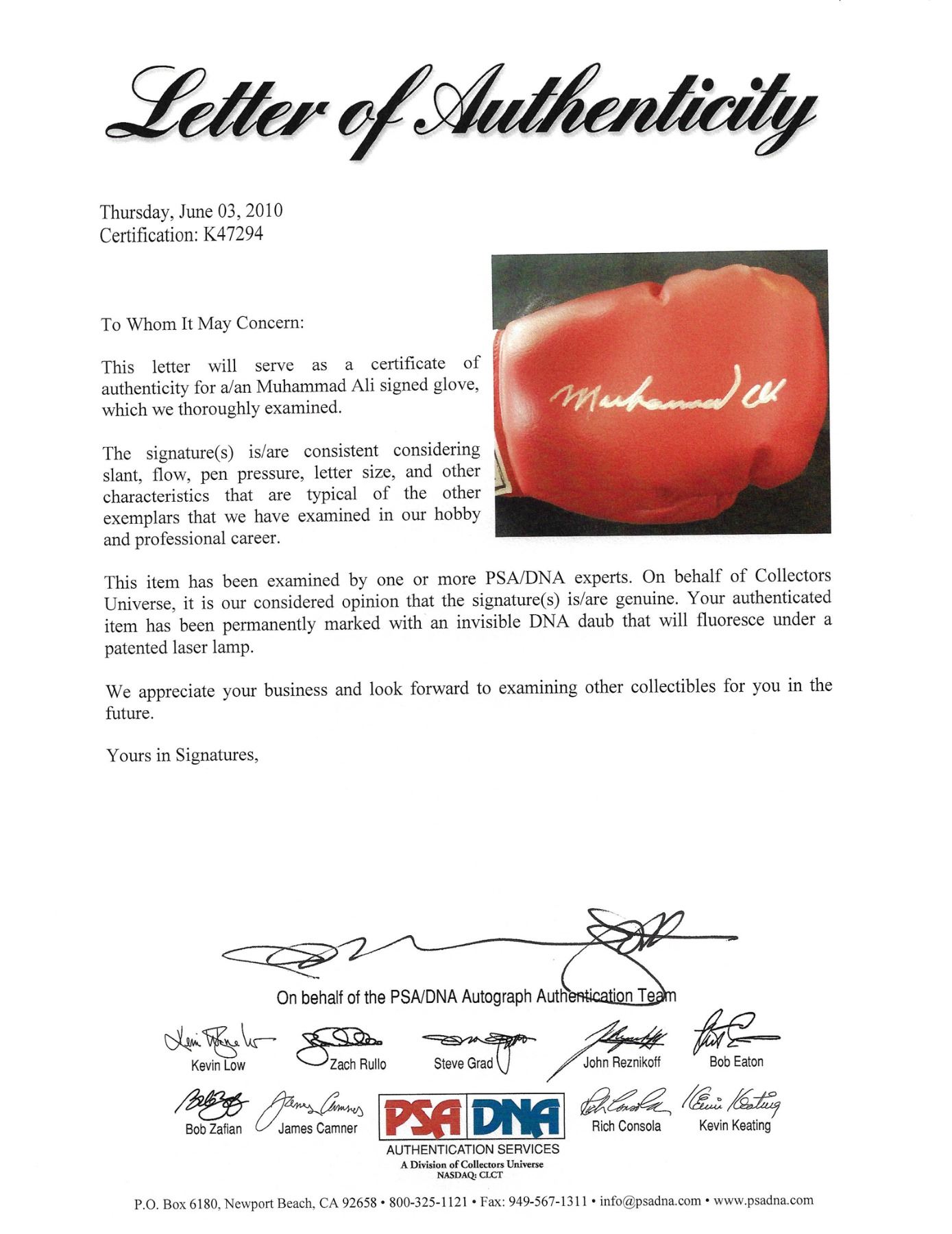MUHAMMAD ALI SIGNED RED EVERLAST BOXING GLOVE (PSA/DNA)