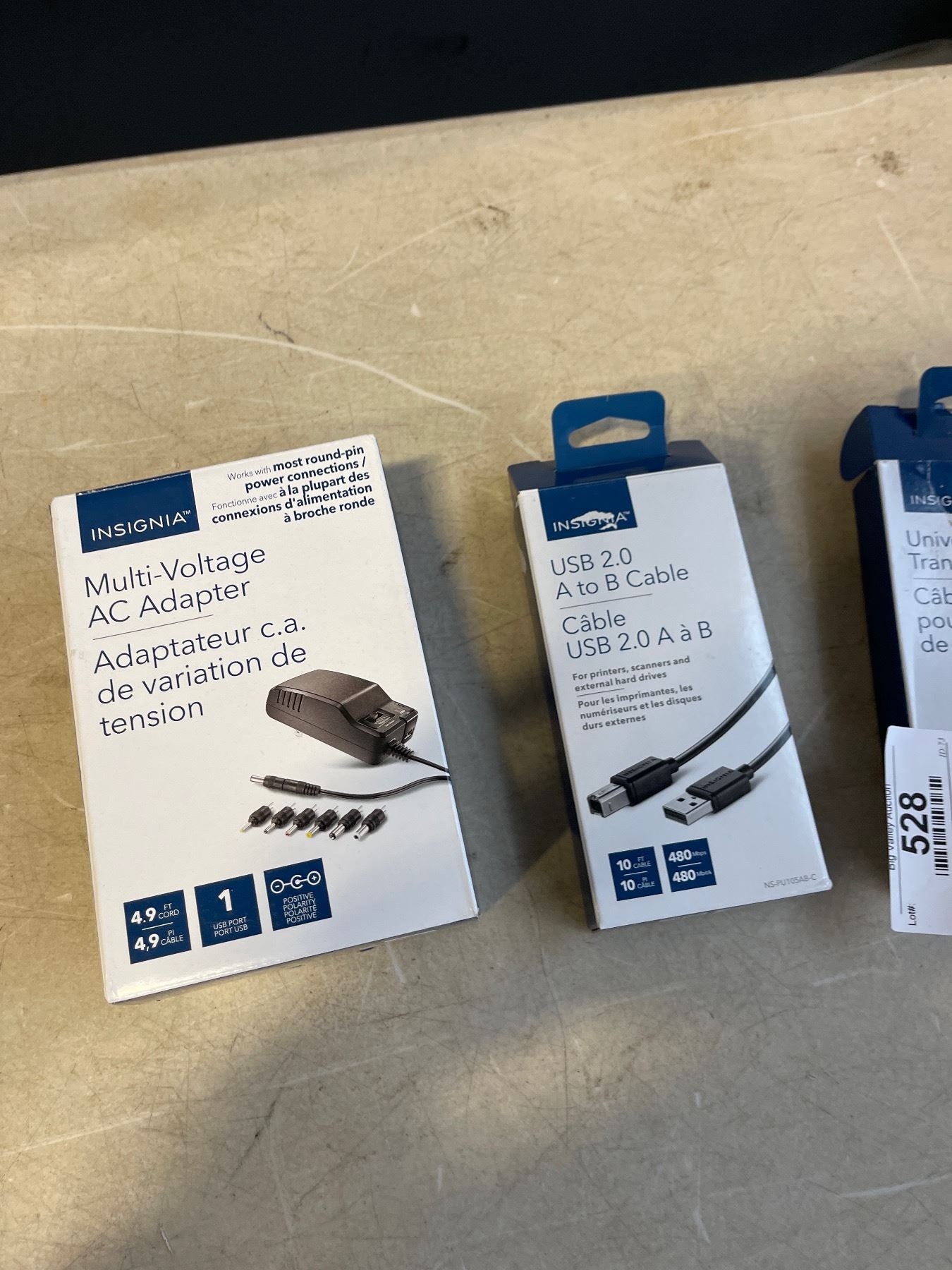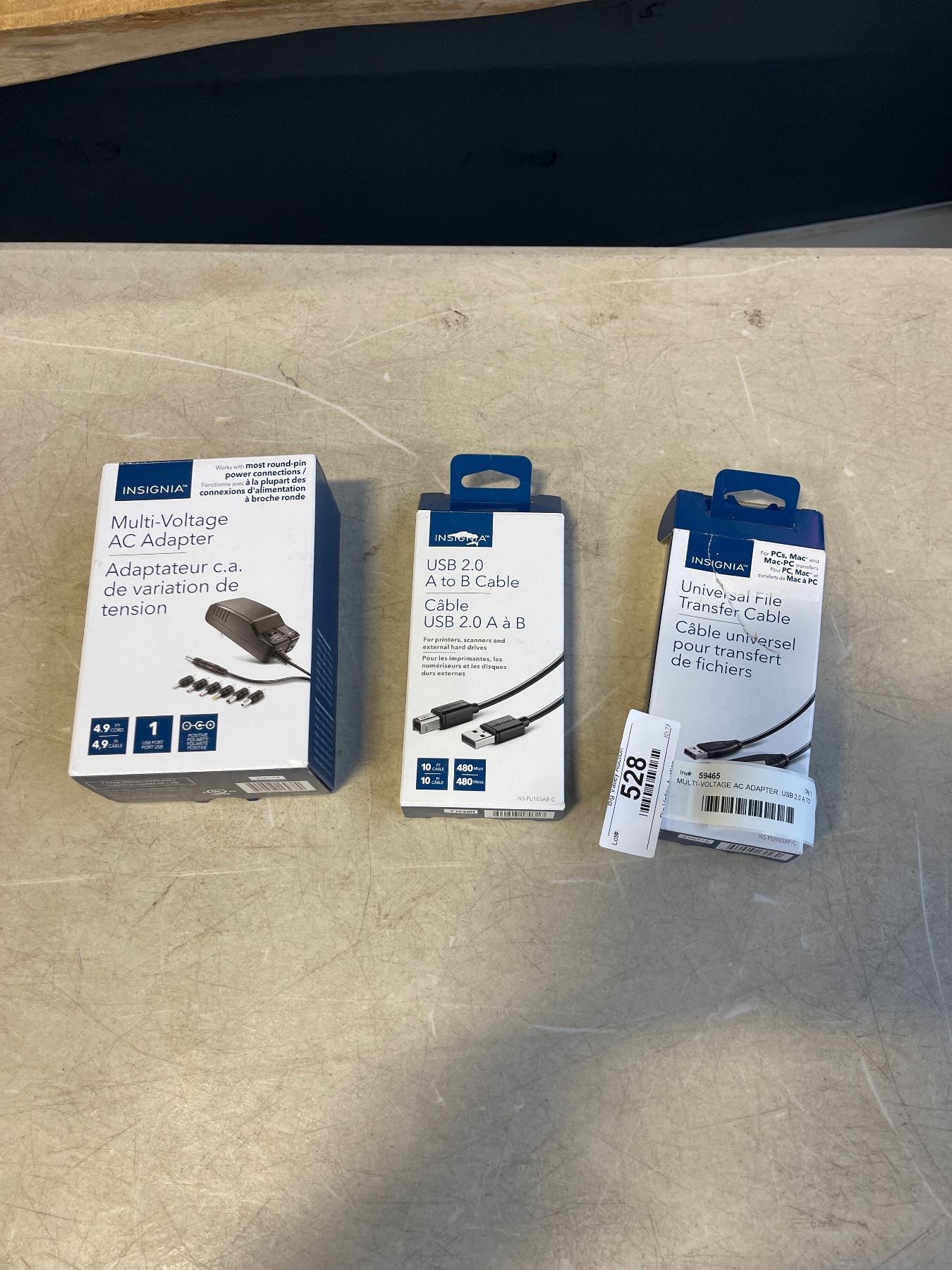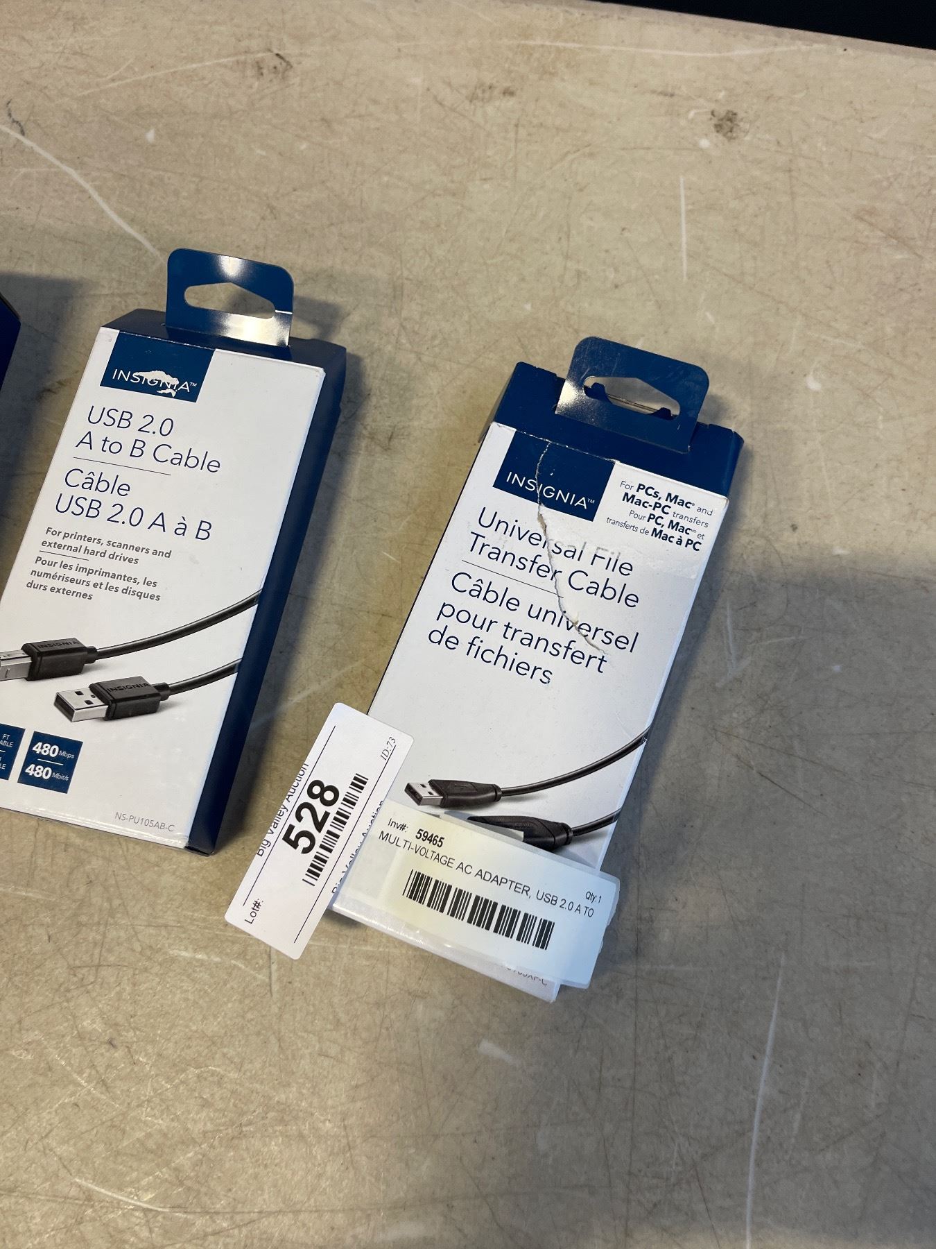 MULTI-VOLTAGE AC ADAPTER, USB 2.0 A TO B CABLE, UNIVERSAL FILE TRANSFER CABLE