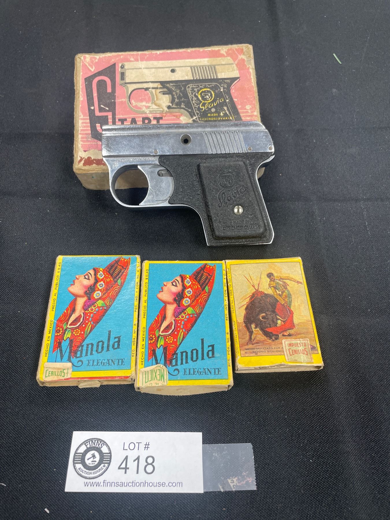 Made in Czechoslovakia Start Pistol plus 3 Empty Vintage Matchboxes