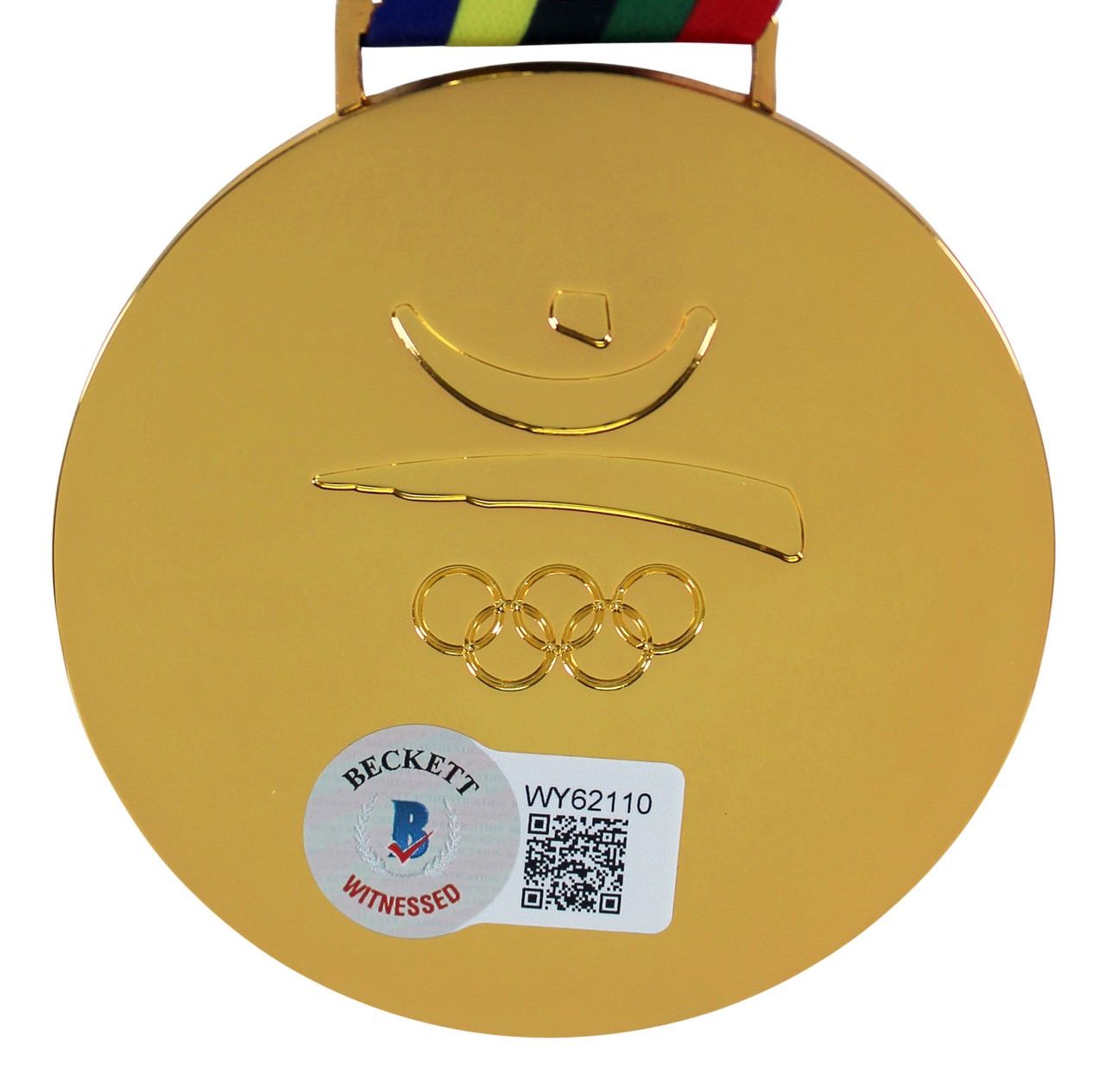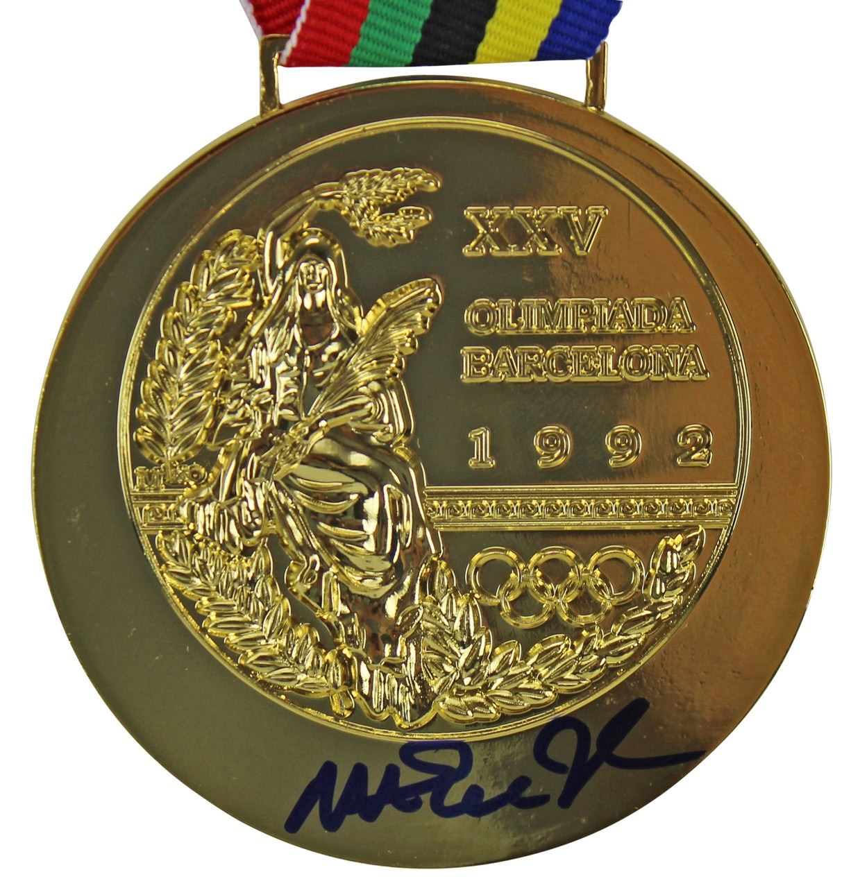 This Autographed 1992 Dream Team Replica Gold Medal has been Personally Signed by Magic Johnson. This item is 100% Authentic to include a hologram by Beckett Authentication Services. This item may come with the new Beckett Authentication hologram that has a scannable QR code rather than the traditional COA. If you would like to have a COA, you are welcome to reach out to Beckett for a printed certification once you receive your item. This is a BAS Witnessed Protection Program item which means a Beckett Authentication Service representative was present when this item was being signed. We conducted an autograph signing with Magic Johnson where multiples of the same item were signed. While the photographs are representative of this item, the size, placement and strength of the signature may vary. Each item is hand signed, therefore, each autograph is unique. This item can be verified through BAS Witnessed.
