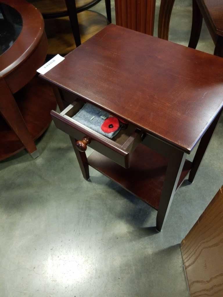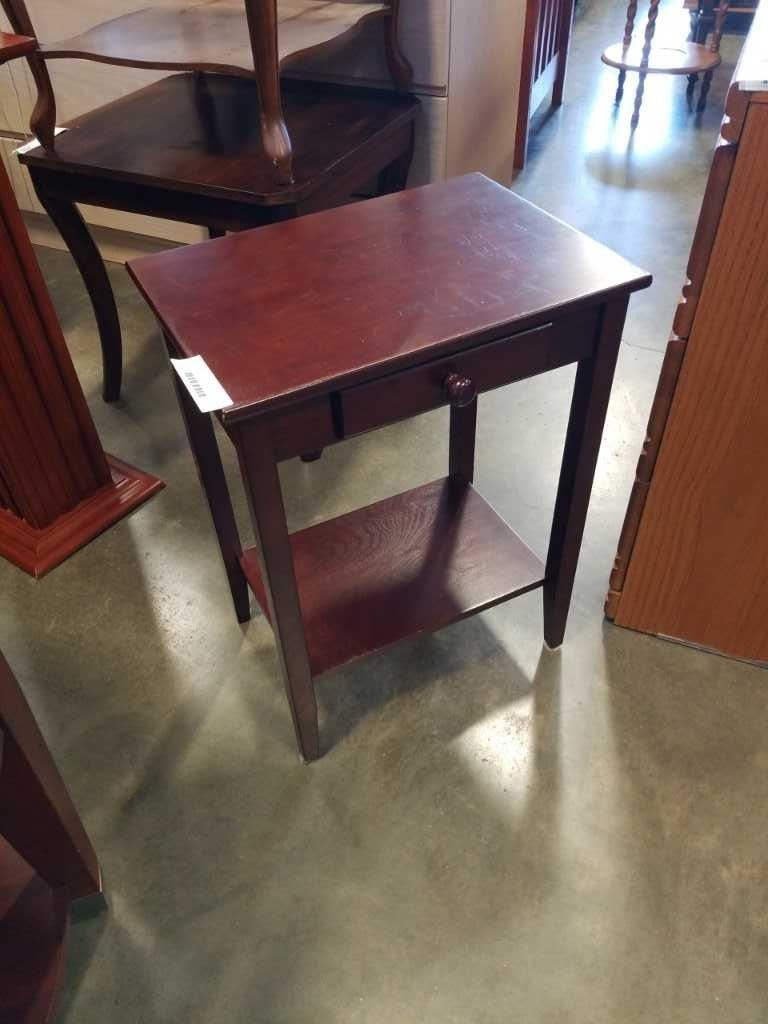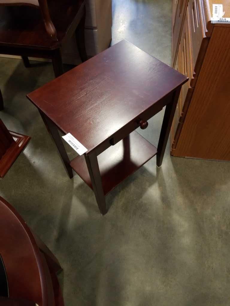 Mahogany finish end table with drawer